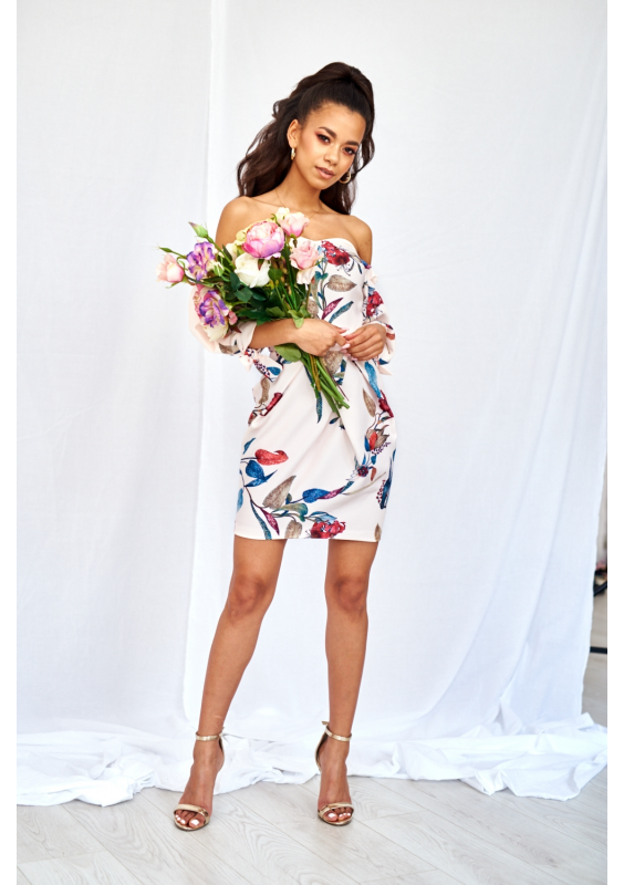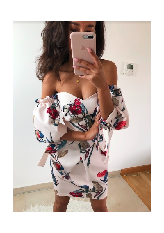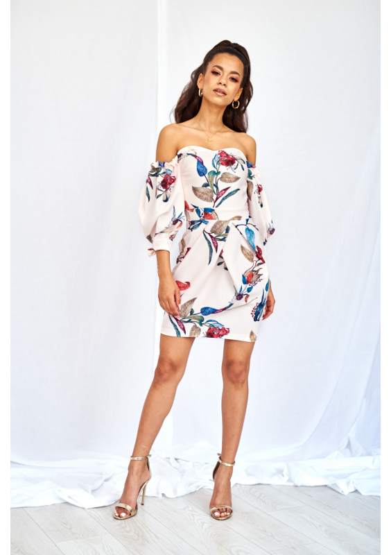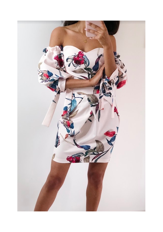GORSETOWA SUKIENKA Z BUFIASTYM RĘKAWEM W KWIATY