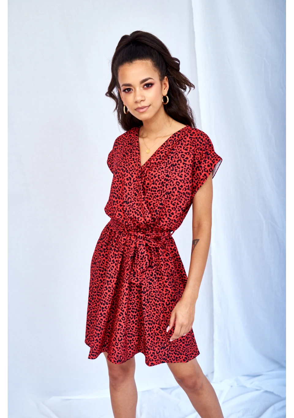 Lilli - Rozkloszowana sukienka z patkami mini Czarna