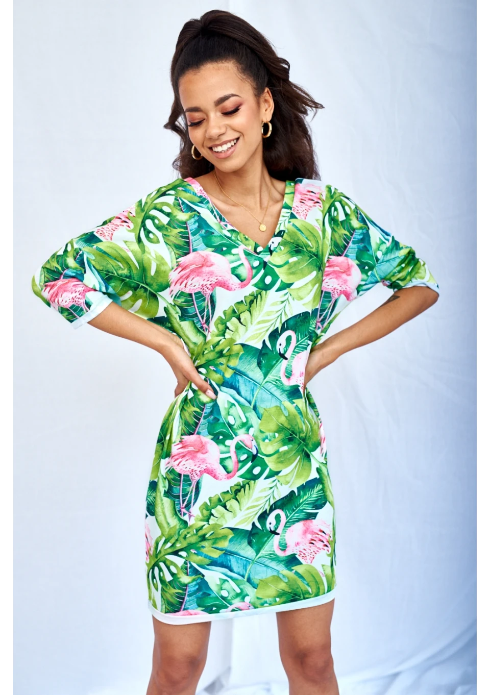 Aruba - Letnia sukienka z dekoltem V Zielona