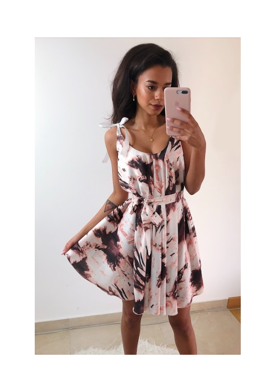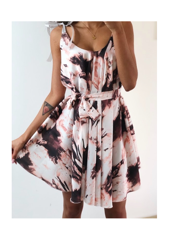 SATYNOWA SUKIENKA POWDER PRINT Z WIĄZANIEM F01