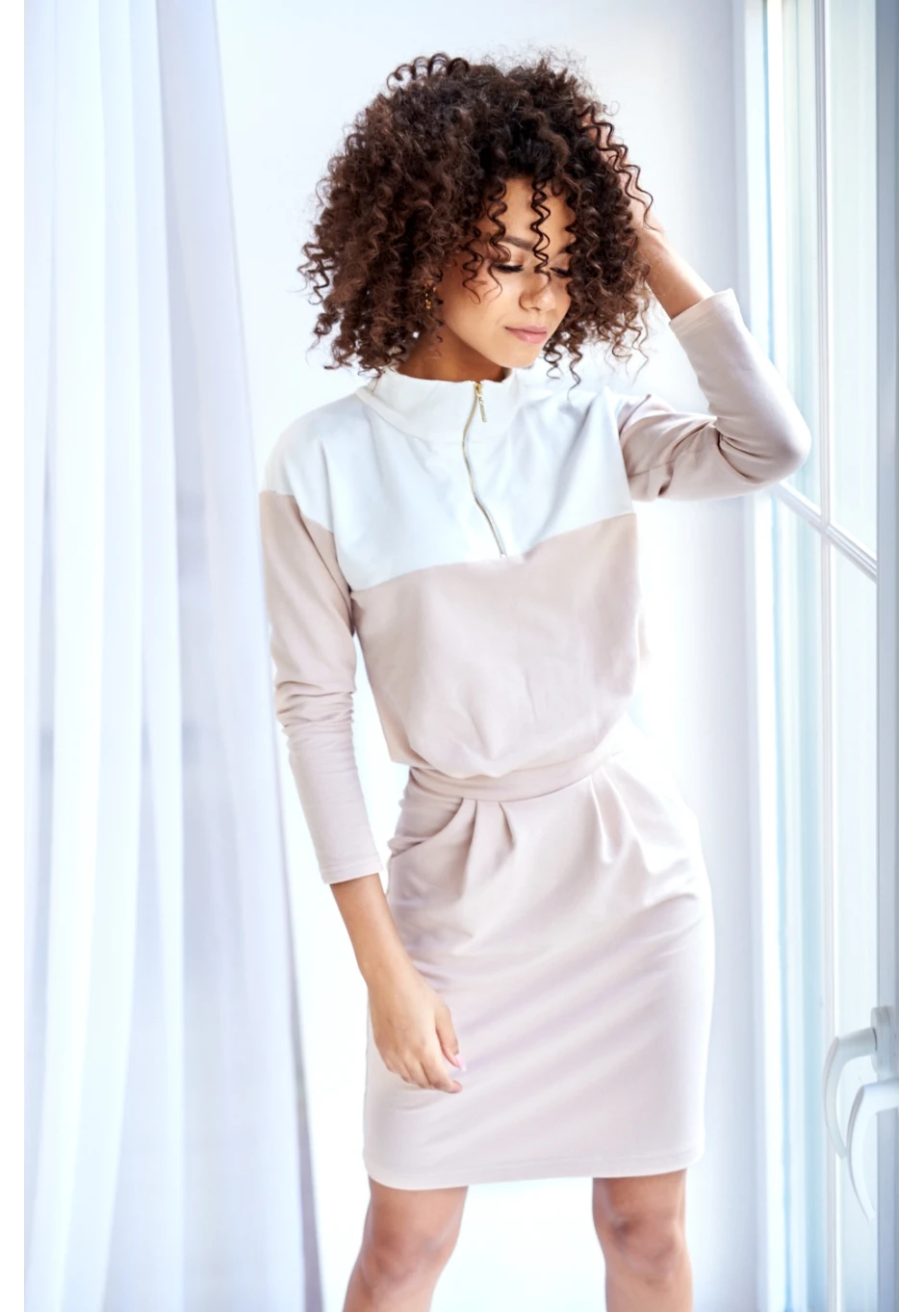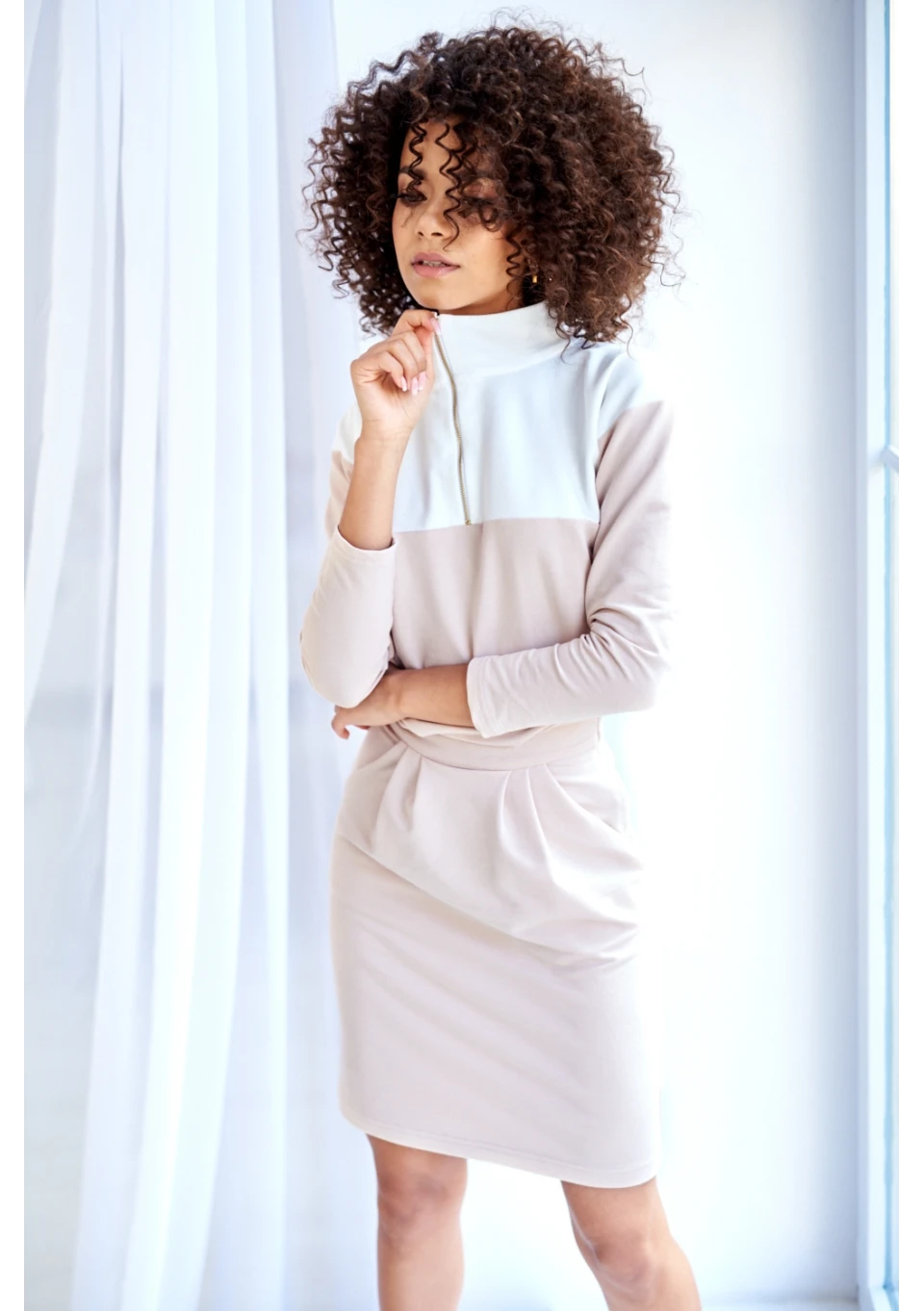 Mira - Sukienka zip z rozcięciem Brązowa