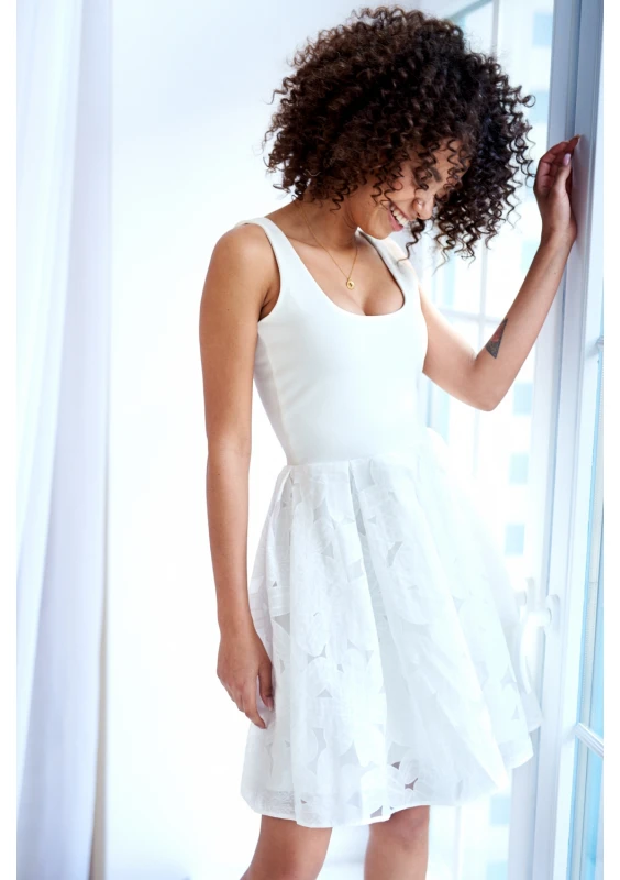 Lila - Rozkloszowana sukienka mini z dekoltem V Ecru