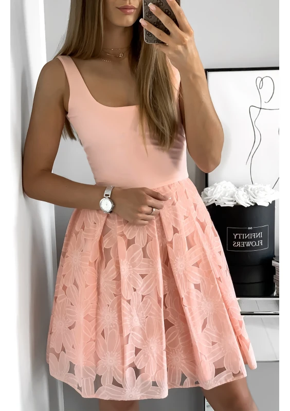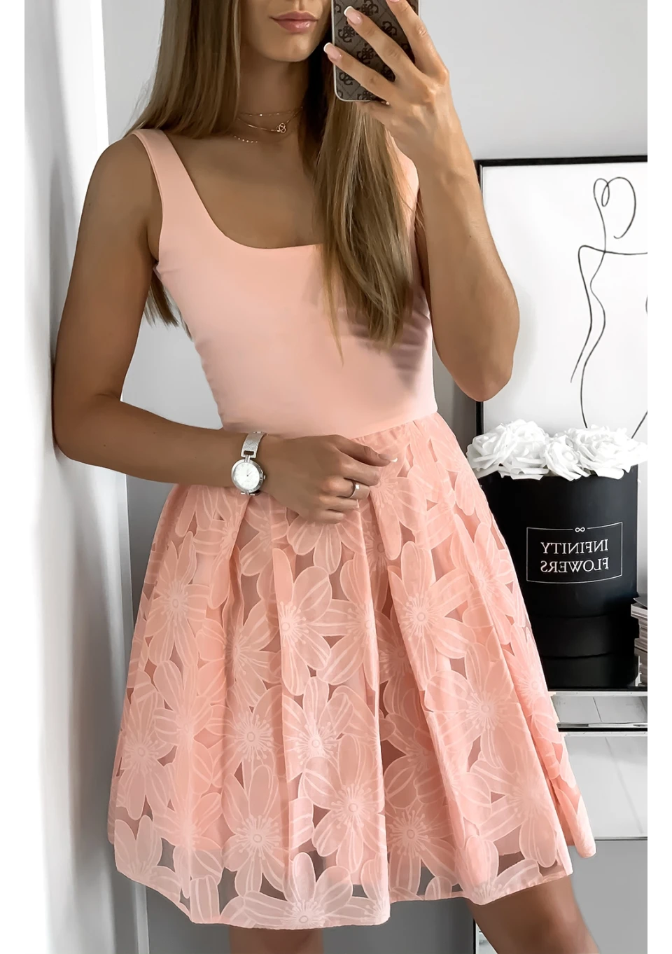 Lilli - Rozkloszowana sukienka z patkami mini Beżowa
