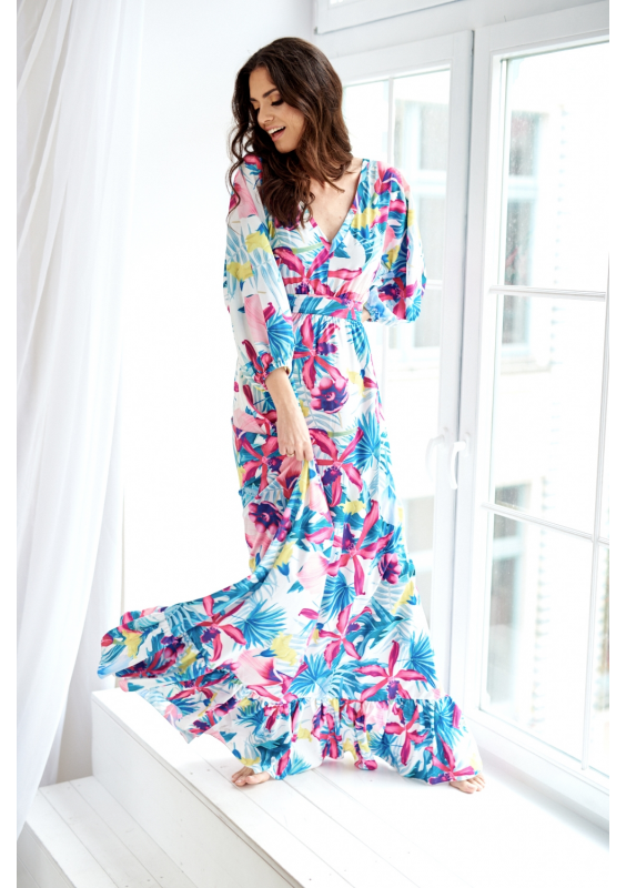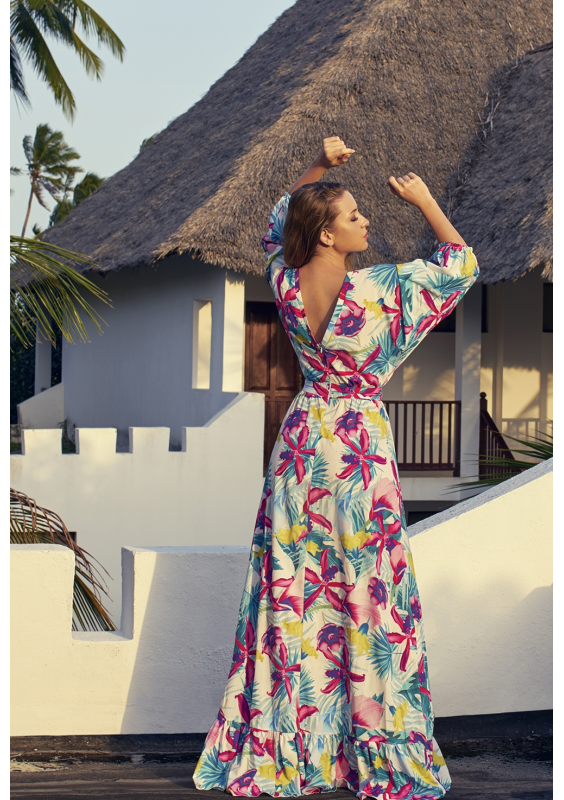 DŁUGA SUKIENKA W KWIATY AMARANT