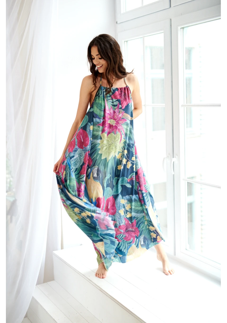 Alexa - Letnia sukienka mini na ramiączkach w kwiatki Ecru