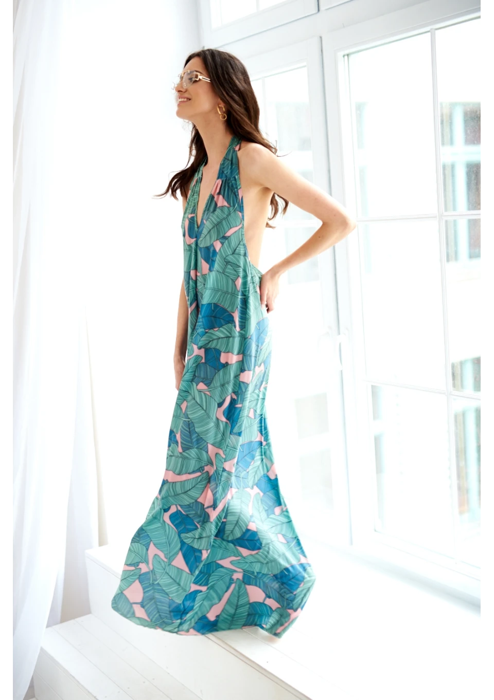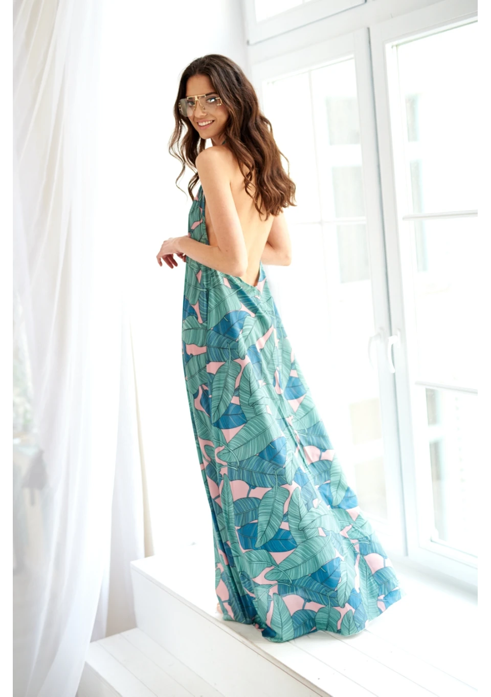 SUKIENKA MAXI WIĄZANA NA SZYI W LIŚCIE
