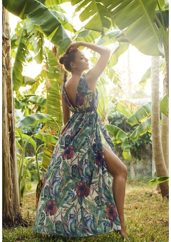 Florea - Kopertowa sukienka maxi Beżowa