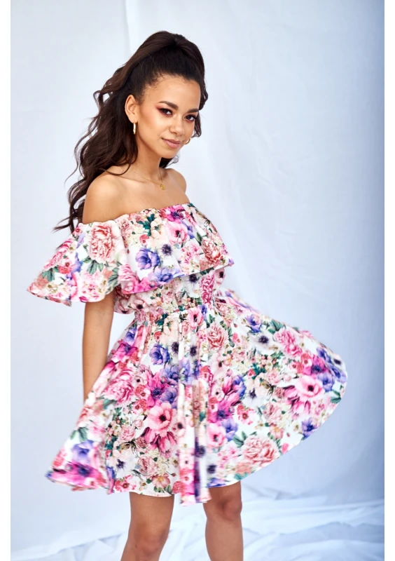 SUKIENKA SUMMER FLOWERS Z FALBANĄ