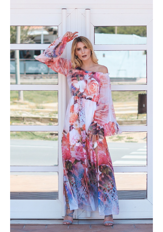 SUKIENKA MAXI Z SZYFONU ROSE PRINT