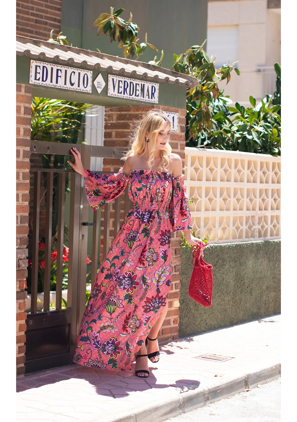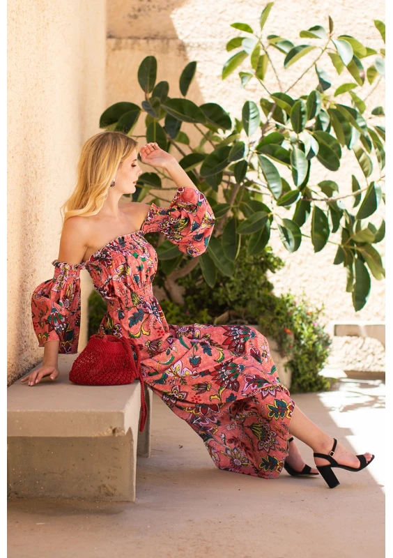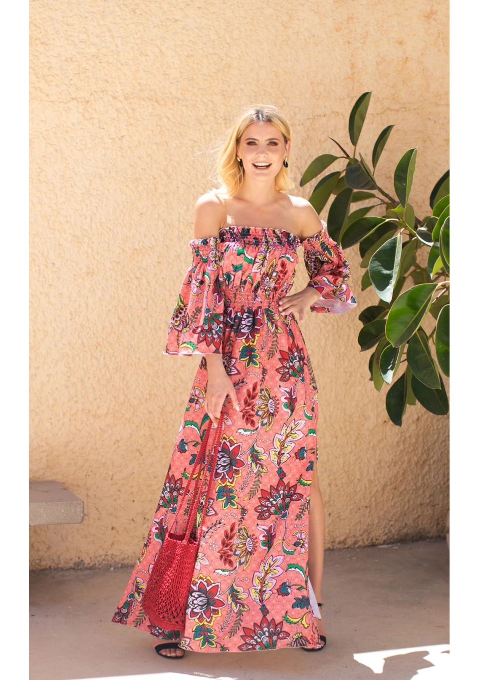 Axelle - Sukienka midi z wiązaniem Brzoskwiniowa