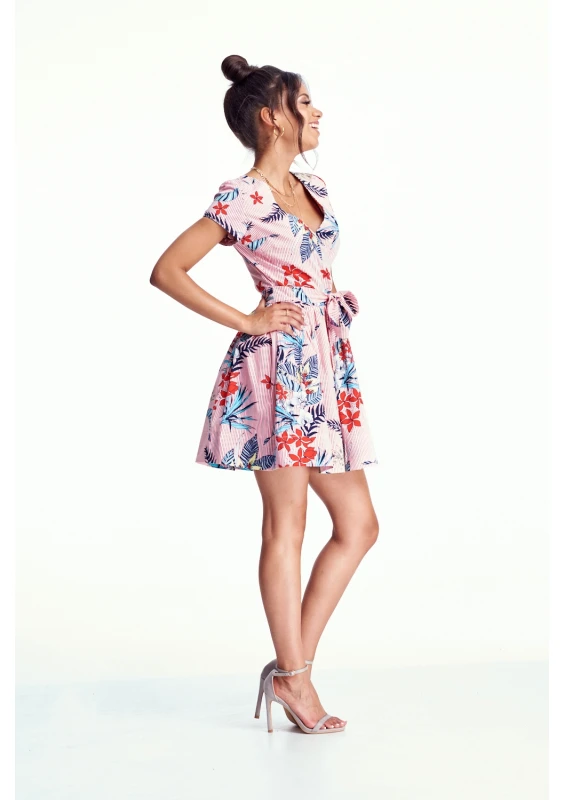 Lekka i przyjemna w dotyku popelina, krótki fason oraz uroczy, kwiatowy print - to idealne połączenie, które rewelacyjnie sprawdzi się w nadchodzącym sezonie. Podobnie jak letnia, bawełniana sukienka w pastelowym, różowym kolorze, idealna na mniej lub bardziej formalne wyjścia. Prezentowany model z pewnością zrobi furorę podczas wakacyjnych wyjazdów, letnich imprez i eleganckich weselnych przyjęć. Jednym z atutów sukienki zaprojektowanej przez Alicję Komar jest wysoka jakość wykonania i staranne wykończenie; prezentowany model został uszyty z miękkiej tkaniny bawełnianej o płóciennym splocie, który jest odporny na ścieranie, niezwykle lekki i doskonale przepuszcza powietrze, gwarantując komfort i wygodę nawet podczas wysokich temperatur.