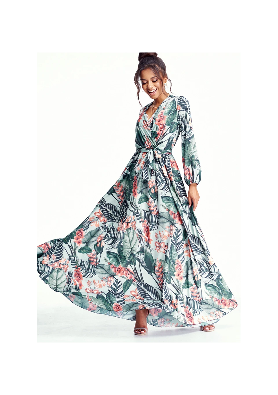 Florea - Kopertowa sukienka maxi Beżowa