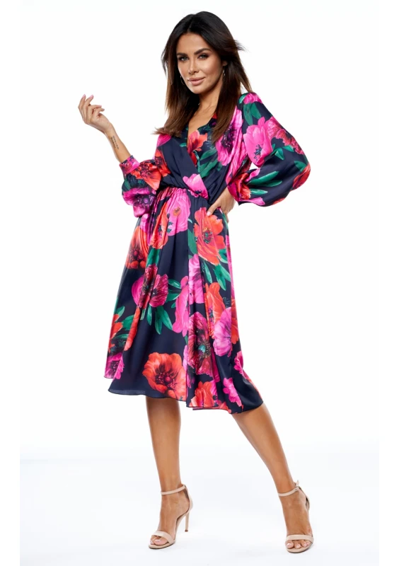 Mirelle - Sukienka midi z kołnierzykiem i dekoltem ,,V" Brązowa