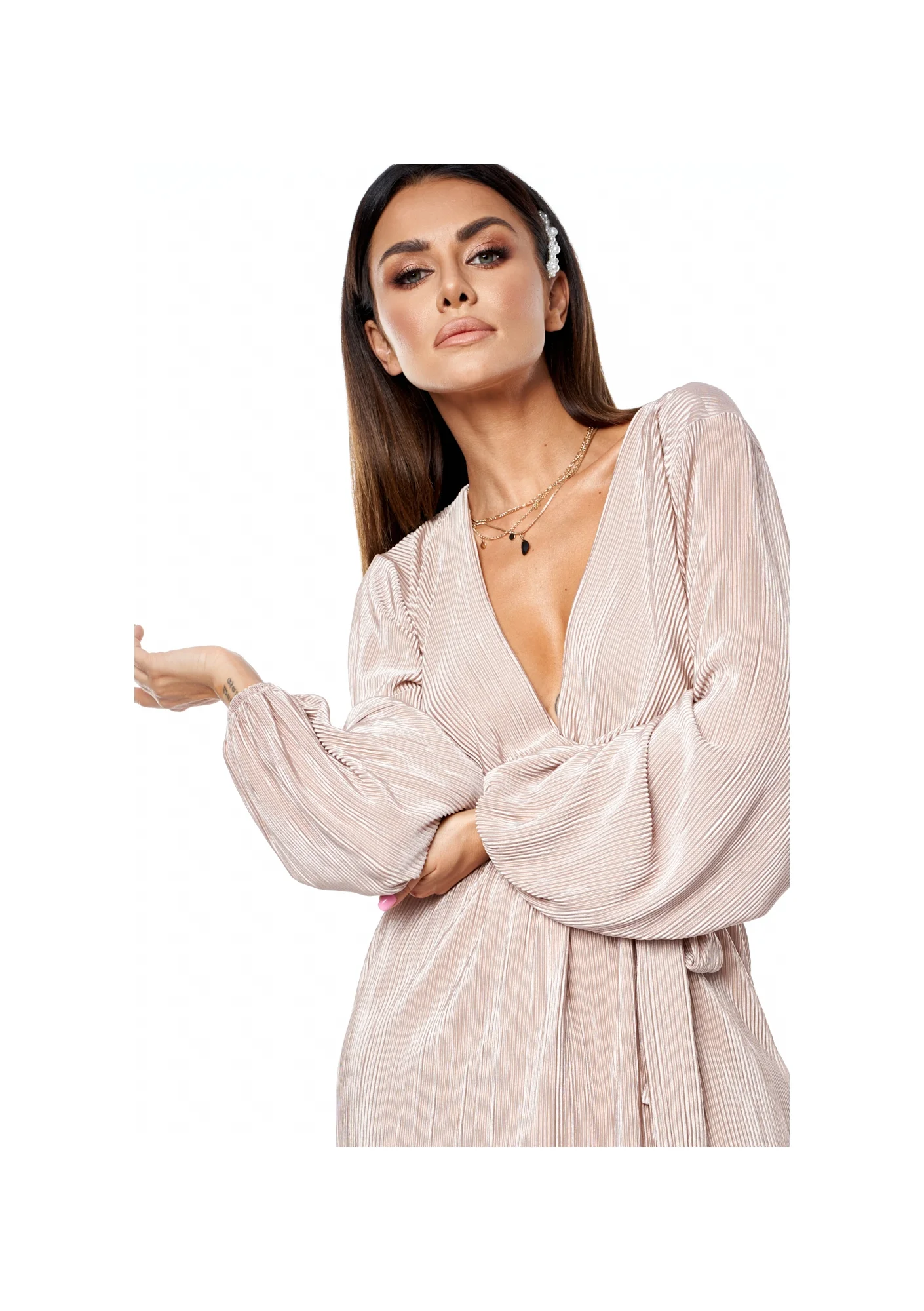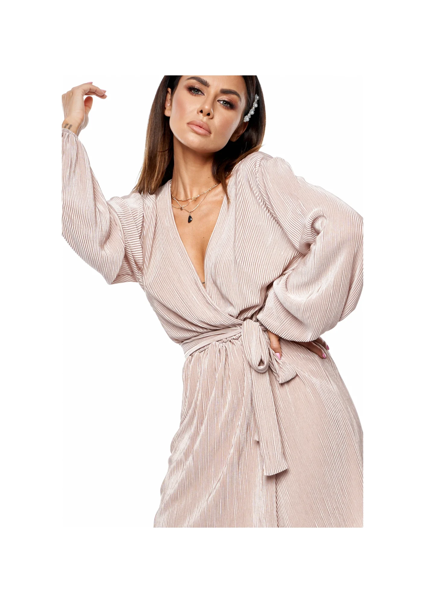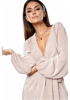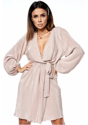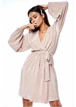 Kopertowa sukienka plisowana Nude
