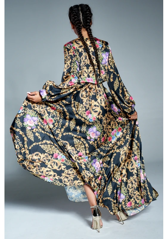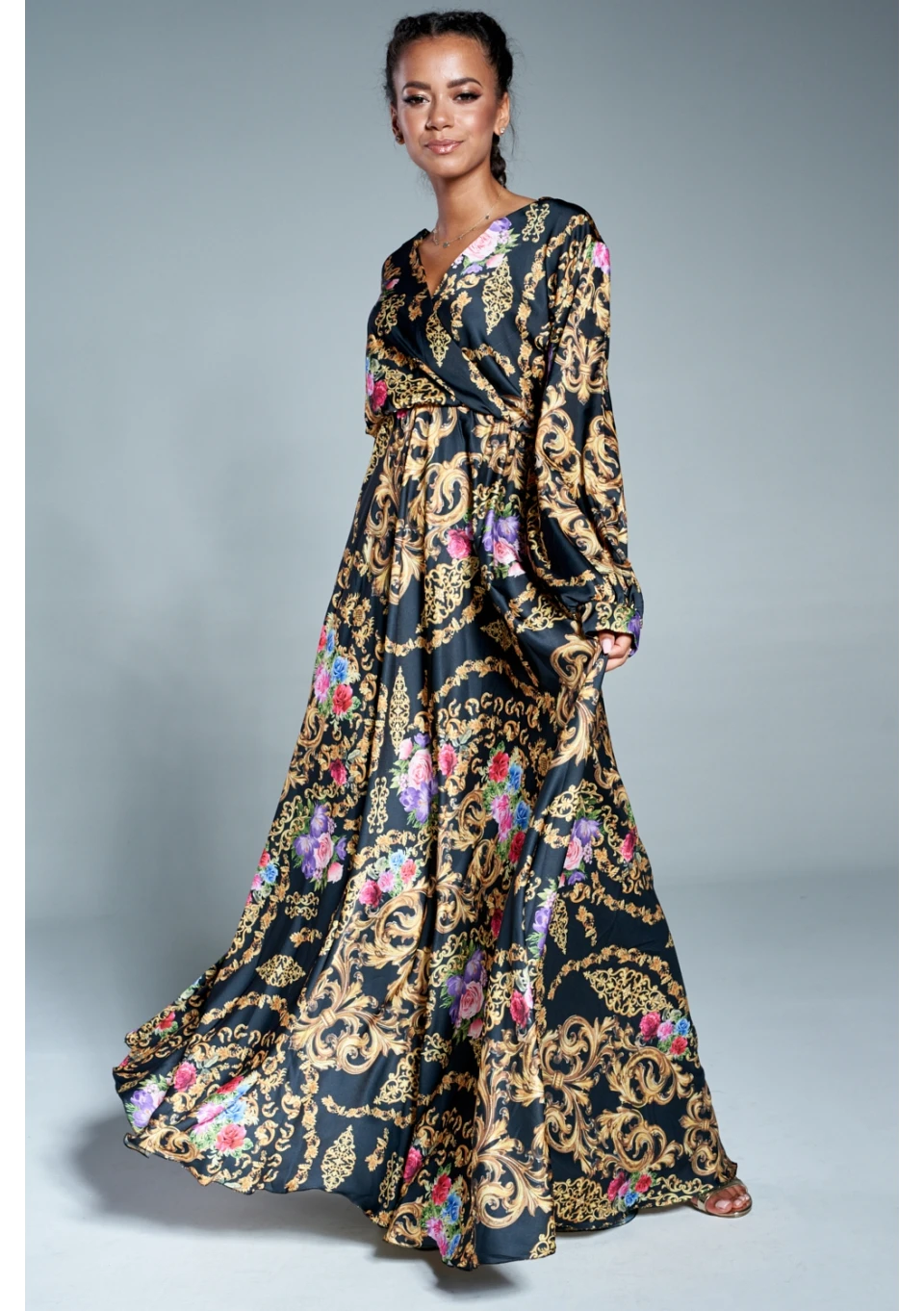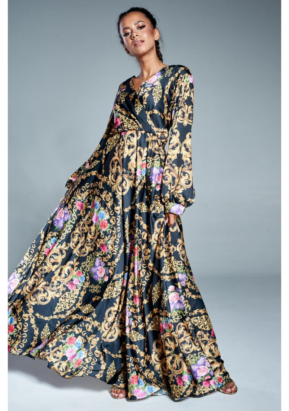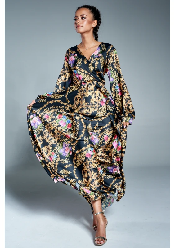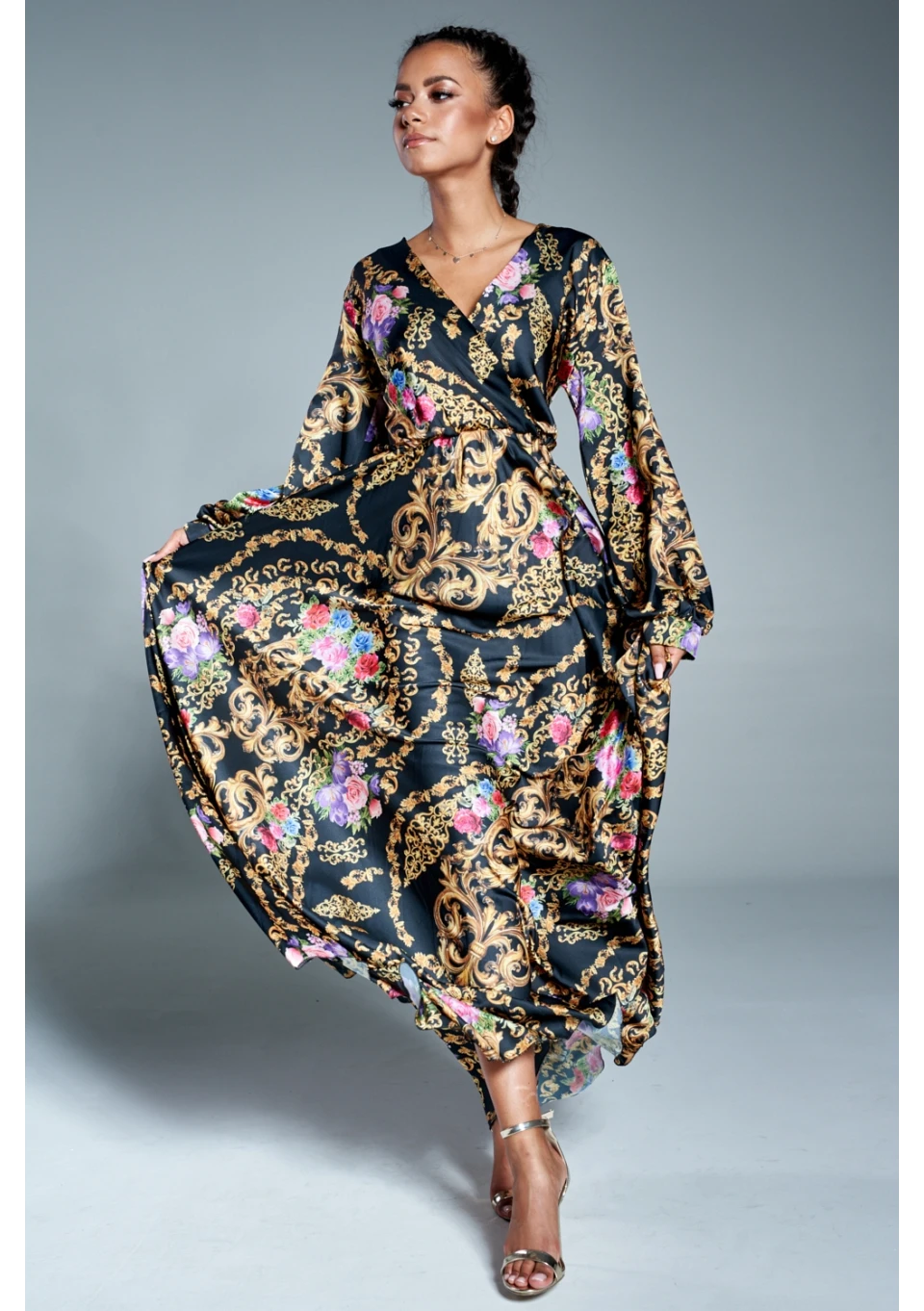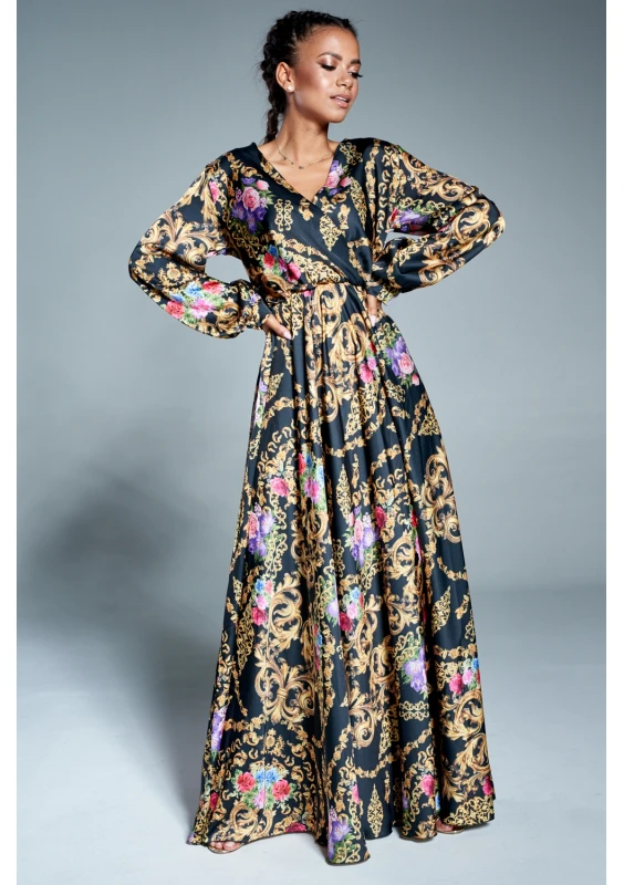 Safona - Dopasowana sukienka maxi z satyny Czarna