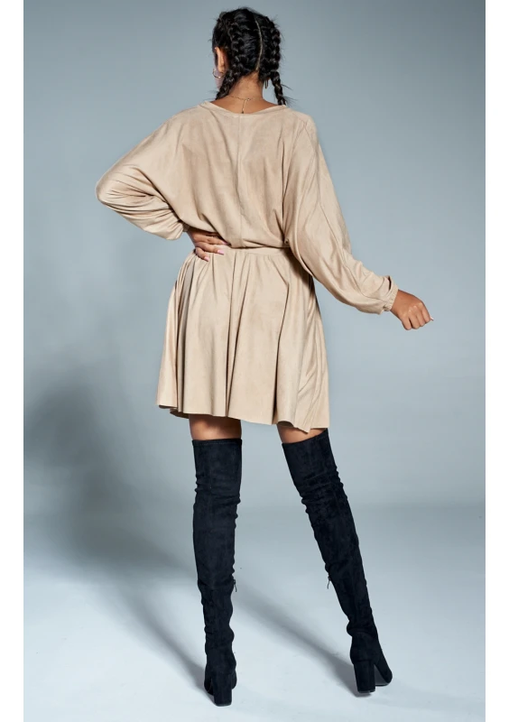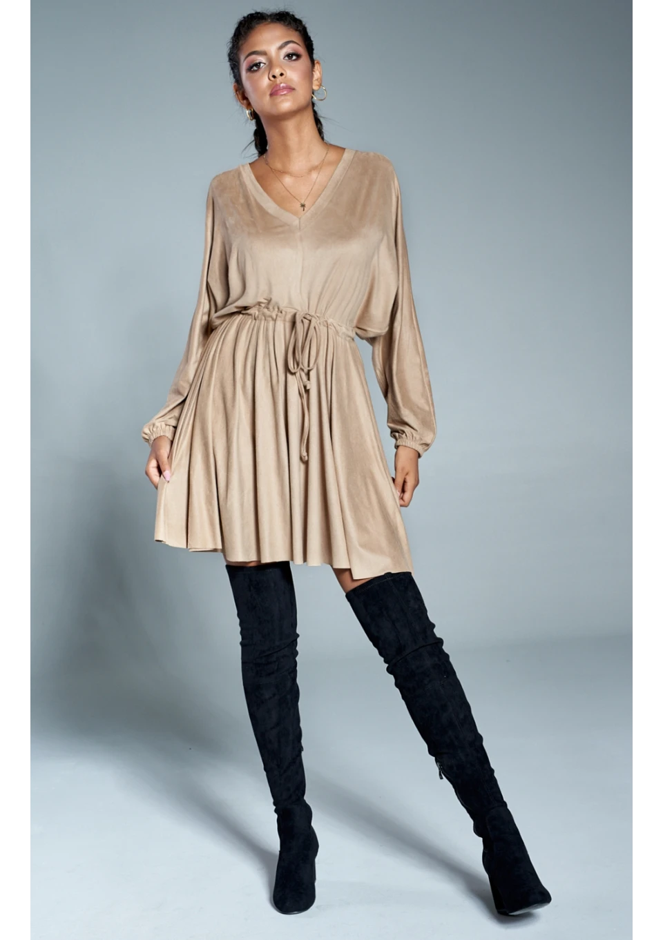 Sukienka z troczkiem z delikatnego zamszu Beżowa