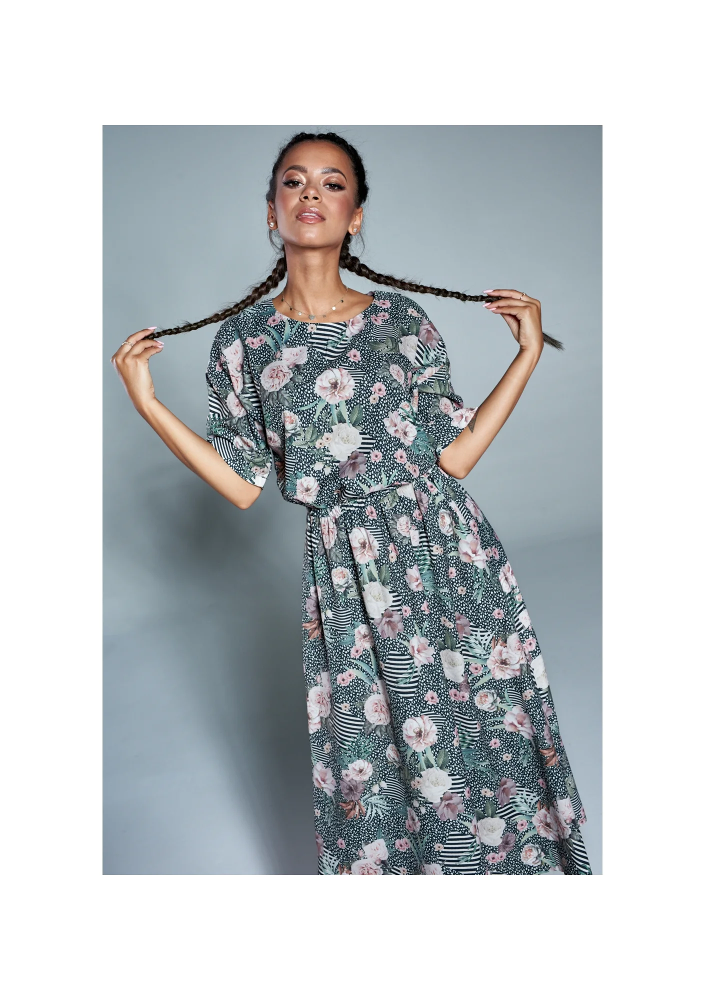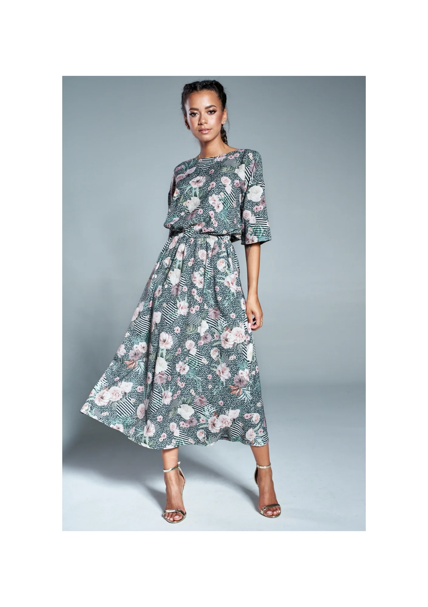 W sklepie internetowym Mosquito znajdziesz szyte wyłącznie w Polsce kreacje o unikatowych fasonach, za które odpowiada Alicja Komar – nasza projektantka, która jest związana zawodowo wyłącznie z naszą marką. Jedną z propozycji dostępnych w naszej ofercie na ten sezon jest sukienka midi z kieszeniami w pudrowe kwiaty z rękawami ¾ i okrągłym, wysokim dekoltem. Elegancki model zwraca uwagę swoim zwiewnym fasonem i wcięciem w talii – dodatek zwężenia sprawia, że figura nabiera kształtów. Sukienka midi jest polecana na wesele, do pracy lub inne oficjalne okazje, w trakcie których wymagany jest gustowny i kobiecy ubiór. Kreacja Mosquito została wykonana z tkaniny poliestrowej o matowym wykończeniu i subtelnie kreszowanej strukturze, która nadaje jej oryginalności. Wykorzystany materiał doskonale przepuszcza powietrze, dzięki czemu sukienka w kwiaty jest idealna na lato i wiosnę.