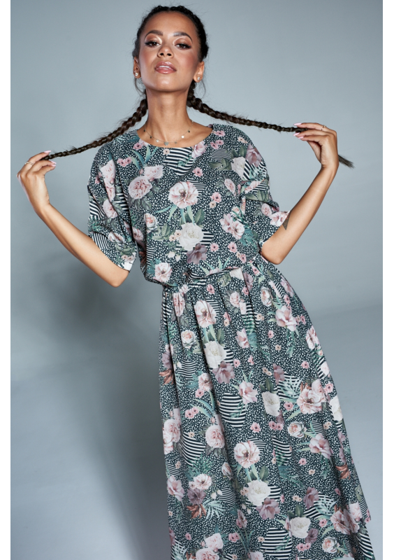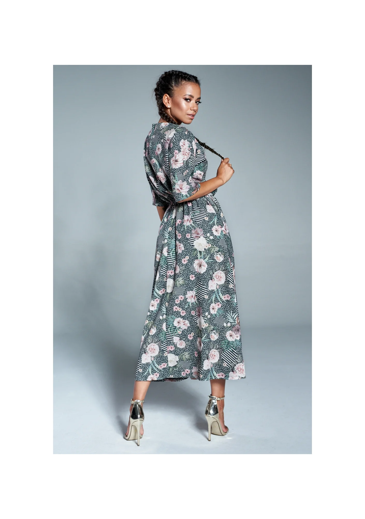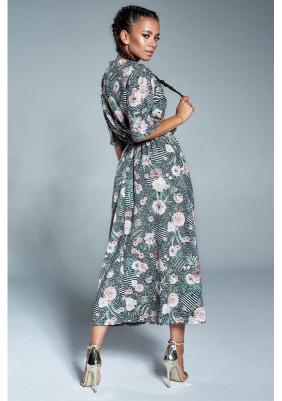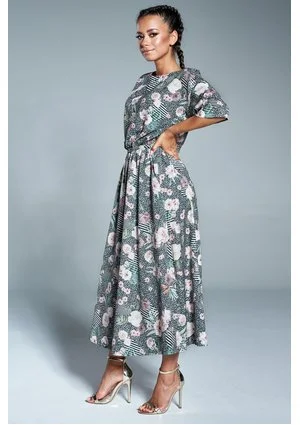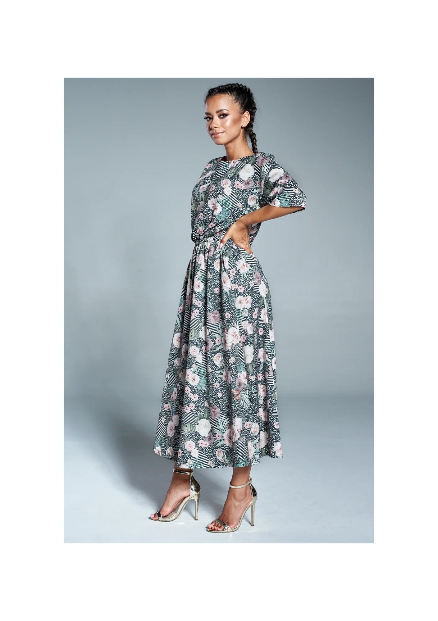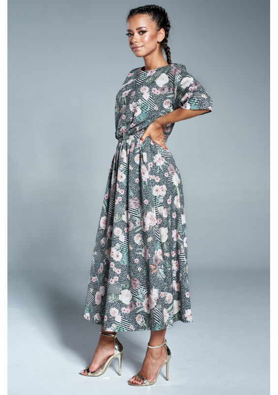 Sukienka midi z kieszeniami w Pudrowe kwiaty