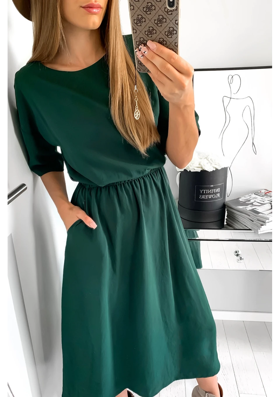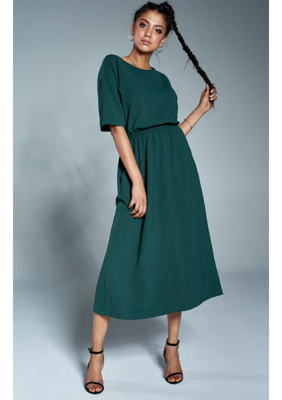 Solene - Dopasowana sukienka midi z wiązaniem na boku Czarna