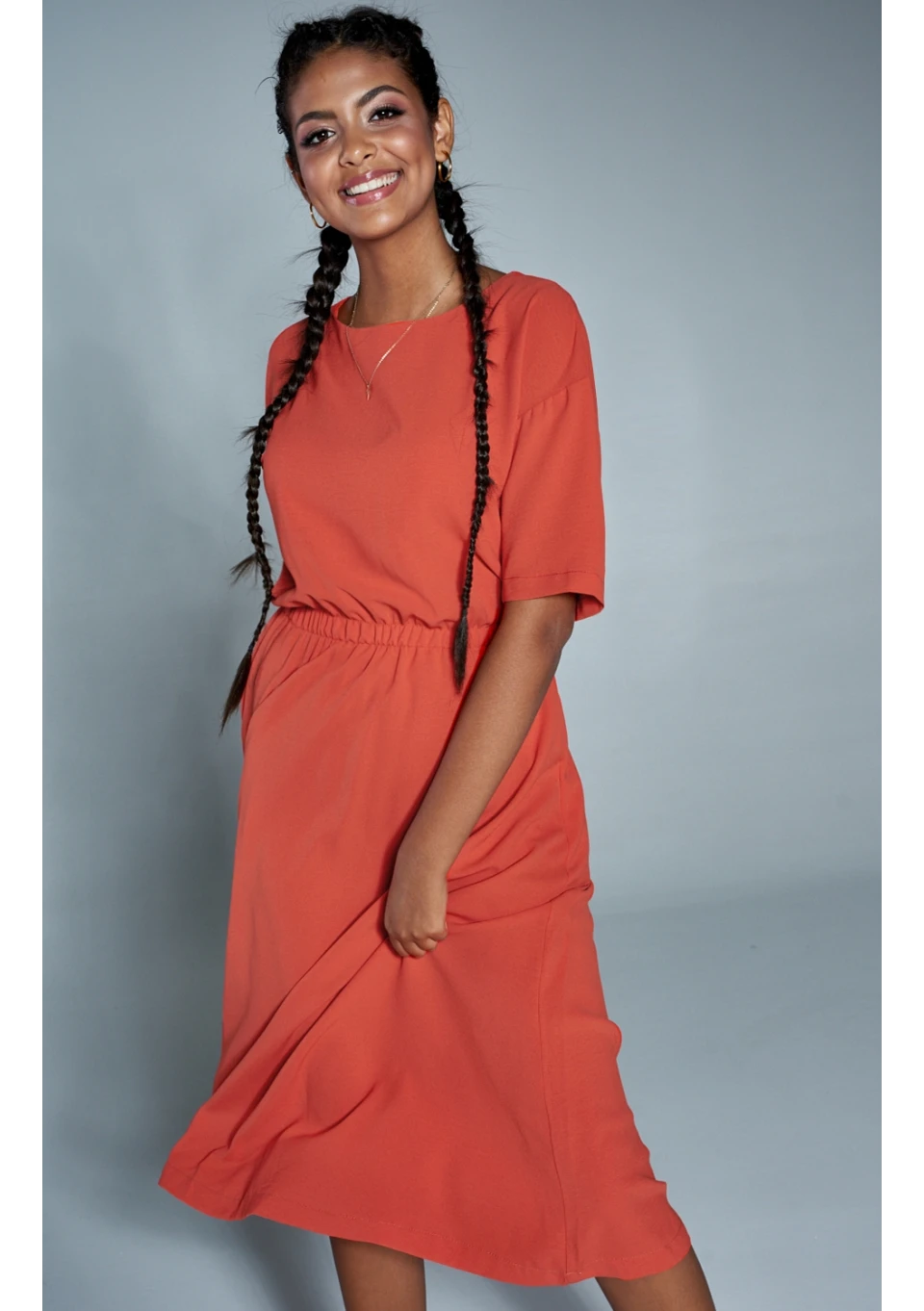 Sukienka midi z kieszeniami Pomarańczowa