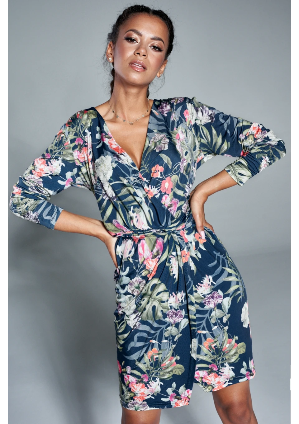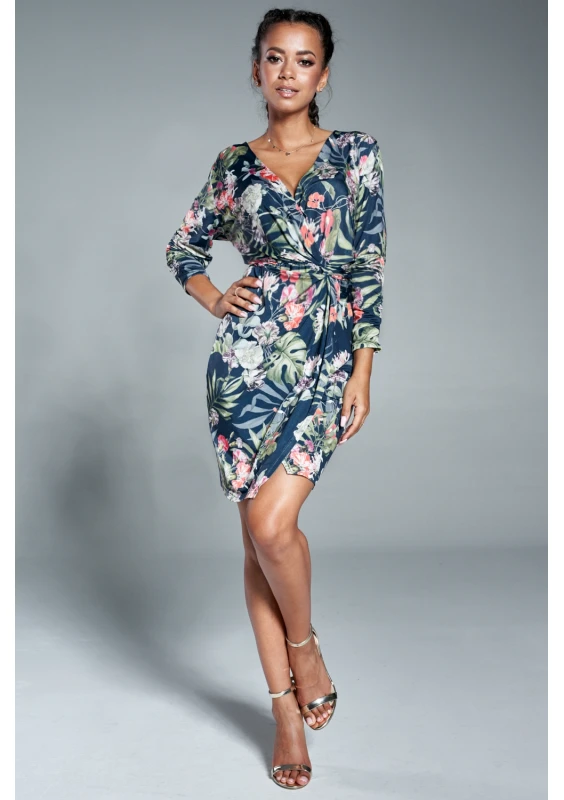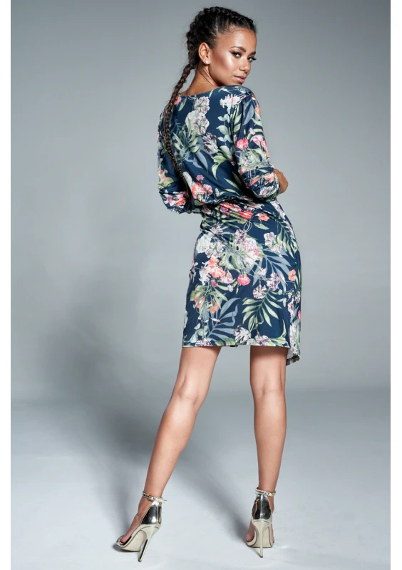 Sukienka w kwiaty z asymetrią Granatowa