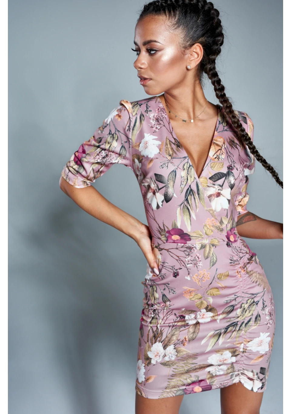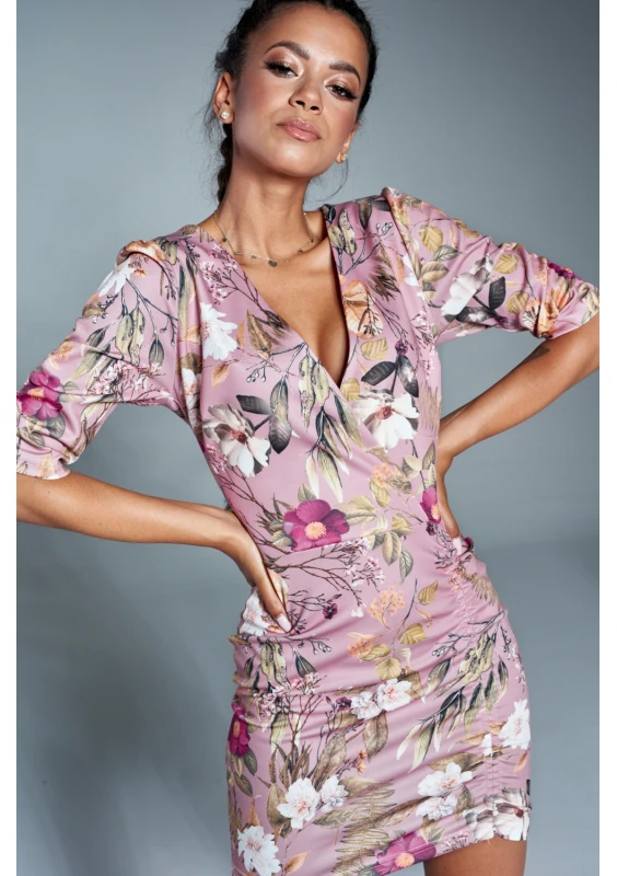 Nera - Kopertowa sukienka mini z poduszkami Beige