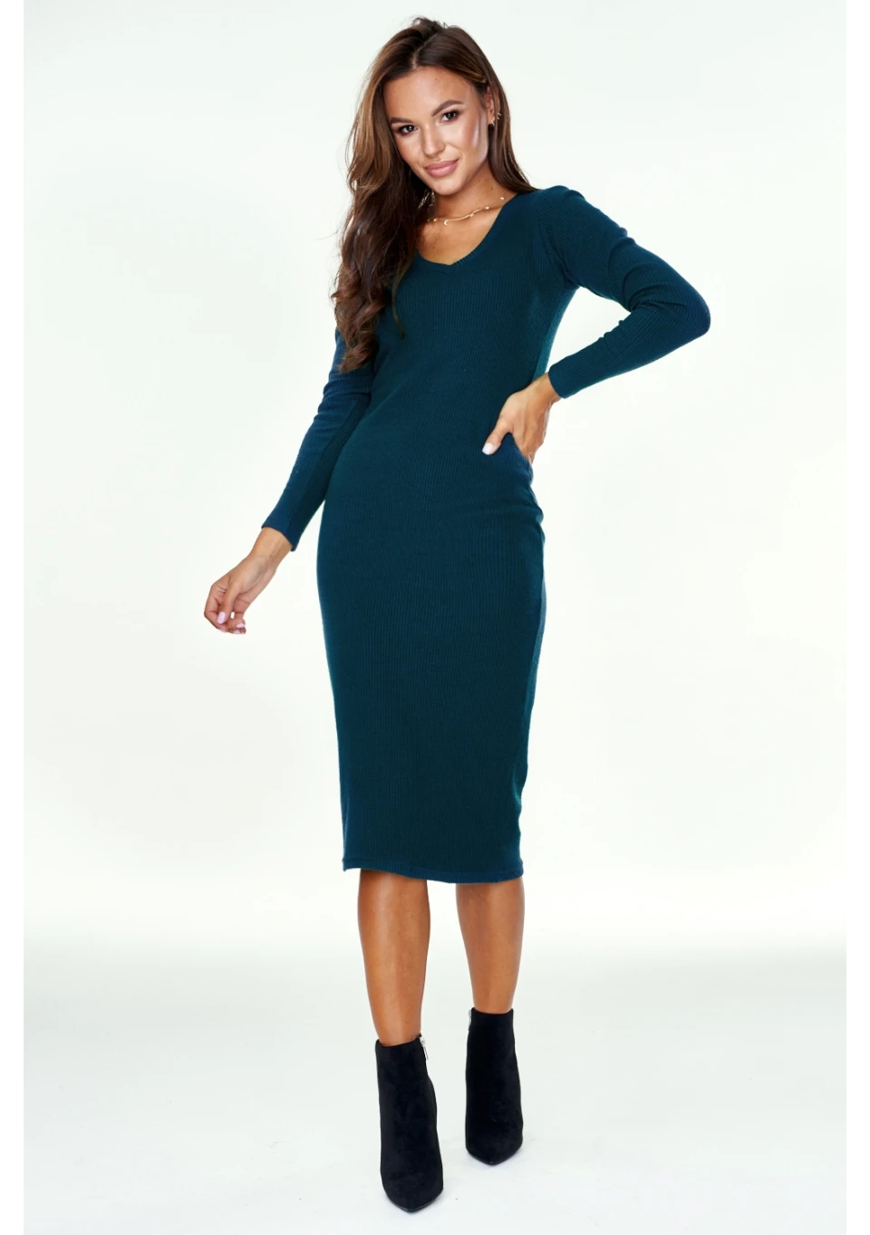 Sukienka midi z dzianiny swetrowej Zielona