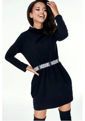 Marzy Ci się elegancka, czarna sukienka, którą będziesz mogła założyć na różne okazje? Zwróć więc koniecznie uwagę na naszą propozycję. Miękka dresówka, z której została uszyta ta piękna sukienka z długimi rękawami, idealnie otuli ciało, podkreślając Twoje kształty. Gumka z logo marki dodatkowo podkreśli zgrabną talię.Góra wykończona stójką sprawia, że jest to kreacja, która świetnie sprawdzi się także w zimniejsze dni. Długość sięgająca powyżej kolan pozwala na eleganckie wyeksponowanie smukłych nóg. Idealną miękkość sukienka zawdzięcza wysokiej zawartości bawełny, która jest przyjazna nawet dla bardzo wrażliwej skóry. Dodatek elastanu sprawia, że sukienka dobrze się układa i jest odporna na rozciągnięcia i odkształcenia. Ta stylowa czarna sukienka zaprezentuje się równie dobrze w połączeniu ze zgrabnymi szpilkami, jak i też w zestawieniu z długimi, zamszowymi kozakami.