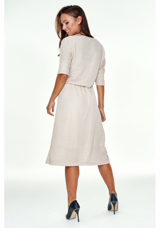 Sukienka z ażurowej dzianiny swetrowej Beżowa