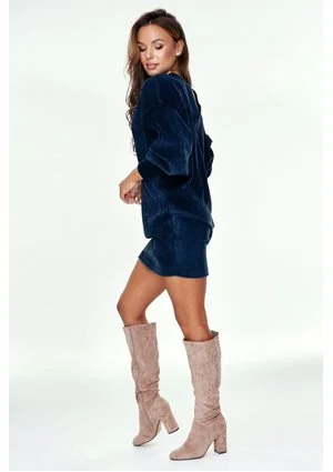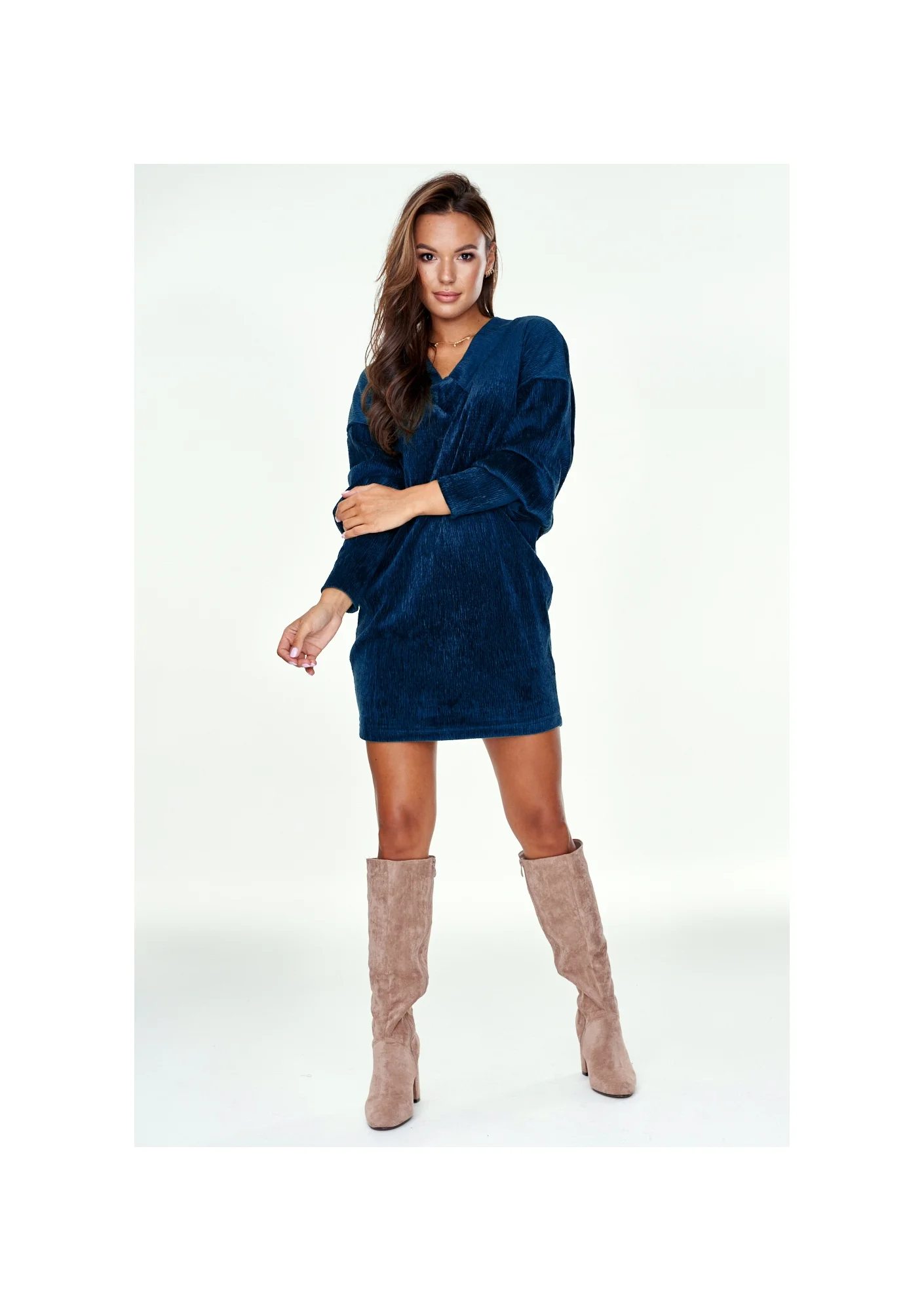 Prawdopodobnie masz już w swojej szafie kilka eleganckich sukienek na specjalne okazje, ale może brakuje Ci czegoś wygodnego na co dzień? Jeśli lubisz nosić sukienki, ale szukasz czegoś oryginalnego, to koniecznie zwróć uwagę na tę piękną granatową tunikę. Kreszowany welur jest nie tylko bajecznie miękki w dotyku, ale także wyróżnia się pięknym matowym blaskiem. Tunika o luźnym kroju zaprezentuje się doskonale na pani noszącej rozmiar XS, ale równie interesująco będą w niej wyglądały panie noszące także większe rozmiary. Krój sprawia, że bez trudu ukryjesz ewentualne fałdki czy inne niedoskonałości figury. W zależności od Twojej fantazji możesz ją potraktować jak sukienkę mini lub możesz nosić ją w duecie z legginsami, lub wąskimi spodniami. W zależności od wybranych dodatków możesz stworzyć z tą tuniką strój idealny na imprezę, albo na spacer po parku. To doskonały punkt wyjścia do eksperymentów z modą.