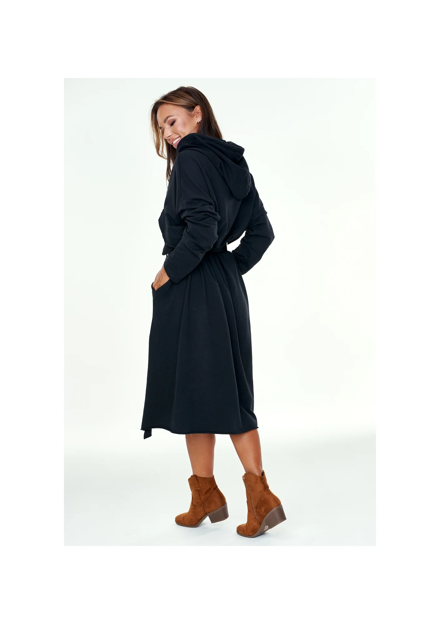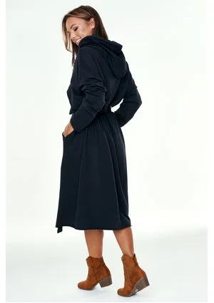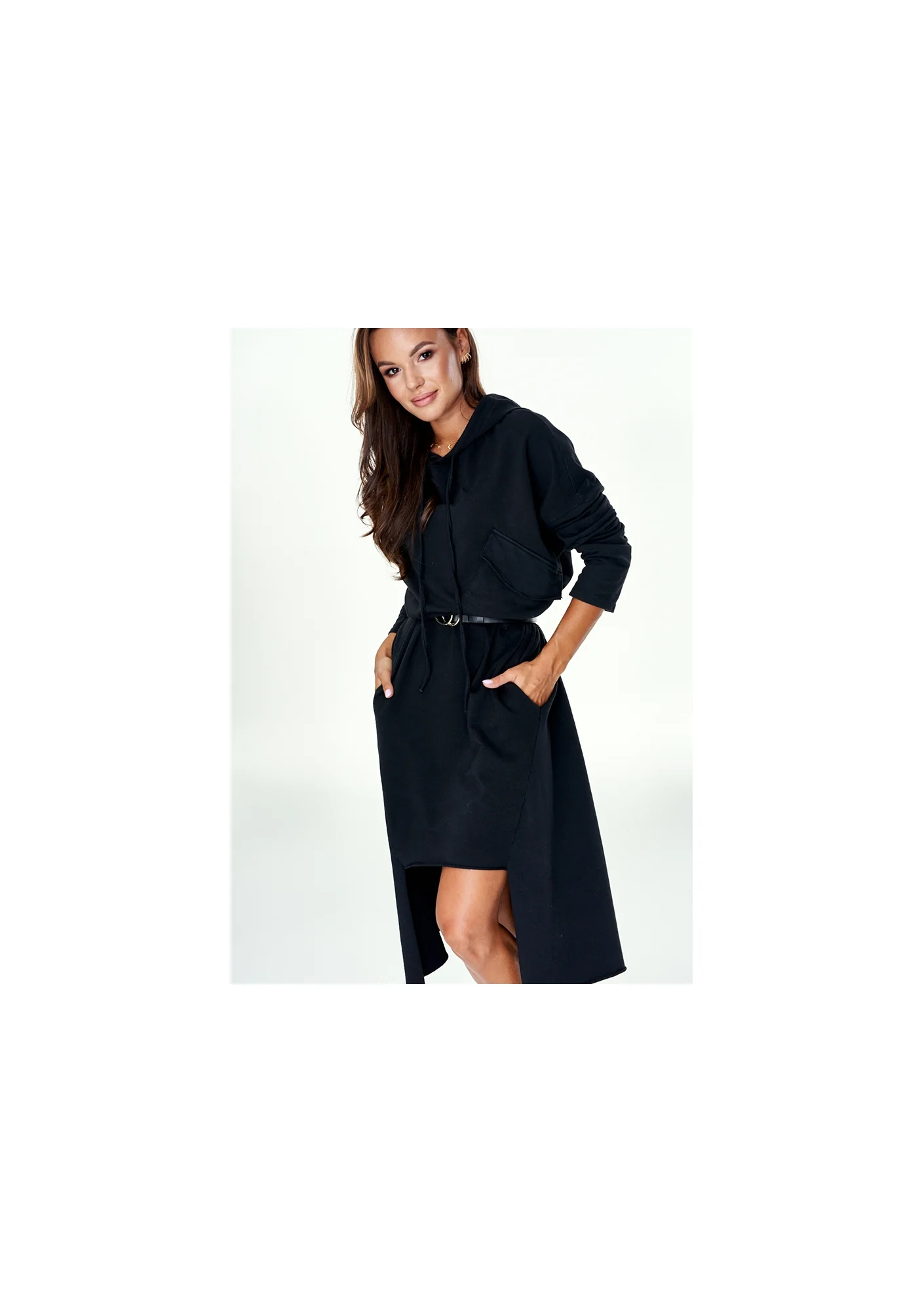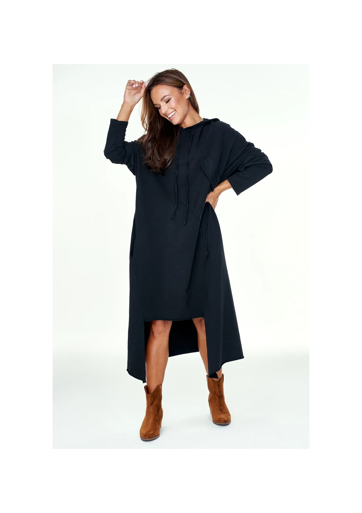 Niecodzienna tunika z kapturem o asymetrycznym kroju to gratka dla kobiet szukających oryginalnych stylizacji. Dzięki wyjątkowo długiemu tyłowi, świetnie sprawdza się jako samodzielny strój. Krótszy przód atrakcyjnie podkreśla nogi. Oversizowy krój sprawia, że tunika jest idealnym strojem dla pań niepewnych swojej figury. Doskonale zatuszuje wszelkie mankamenty, tym samym podnosząc pewność siebie i pozwalając poczuć się atrakcyjnie. Może też seksownie podkreślać sylwetkę. Wystarczy połączyć ją z grubym pasem w talii, żeby wyeksponować kształty i stworzyć bardziej seksowny look. Całość została wykonana z bawełny dzianinowej, która jest miękka i ciepła. Kaptur może dodatkowo chronić przed wiatrem. Noszenie tuniki to prawdziwa przyjemność! Pasują do niej buty typowe dla chłodniejszych dni, w tym botki, sztyblety i kozaki.