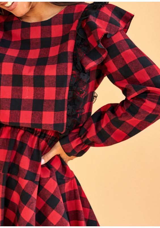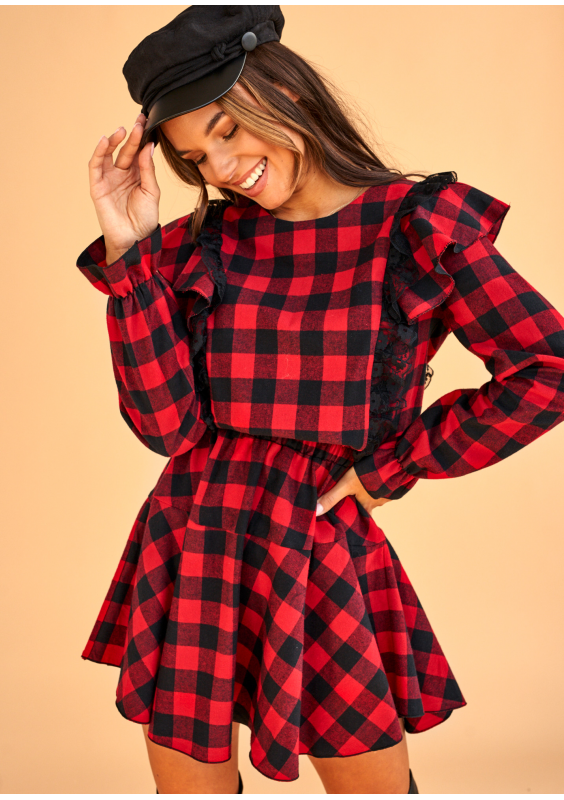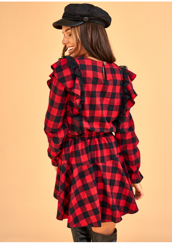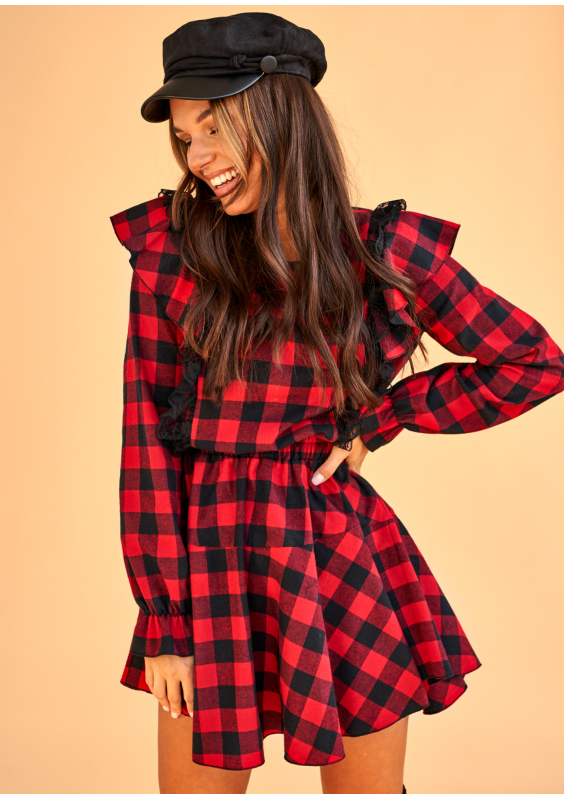 Sukienka w kratkę z falbankami Czerwona