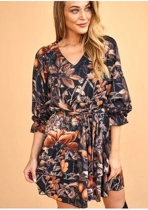 Sukienka z paskiem w Kwiaty