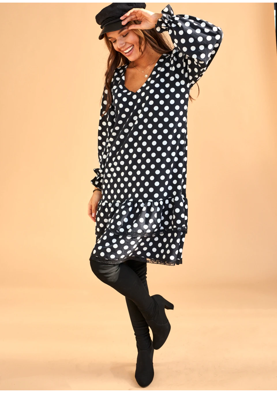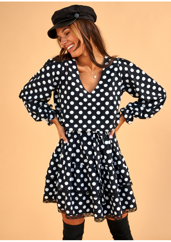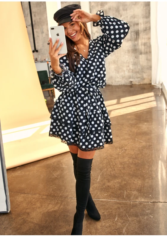 Sukienka z paskiem w Grochy