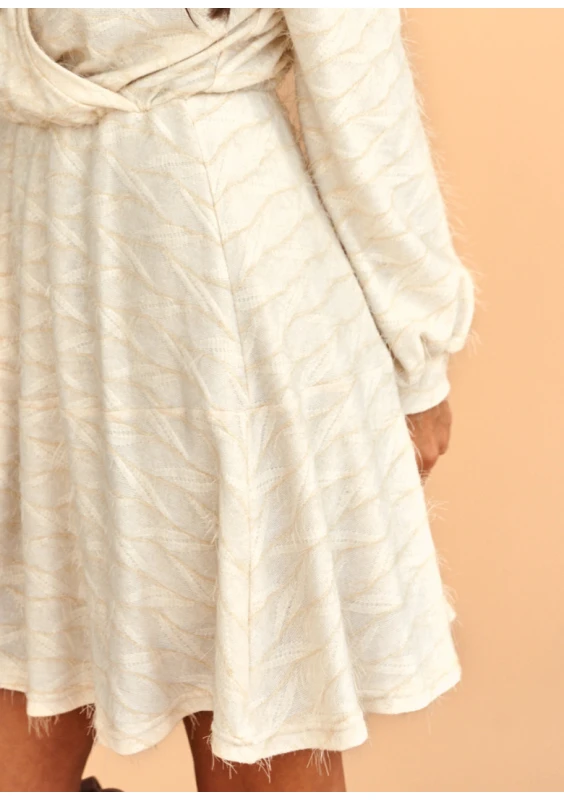 Lila - Rozkloszowana sukienka mini z dekoltem V Ecru