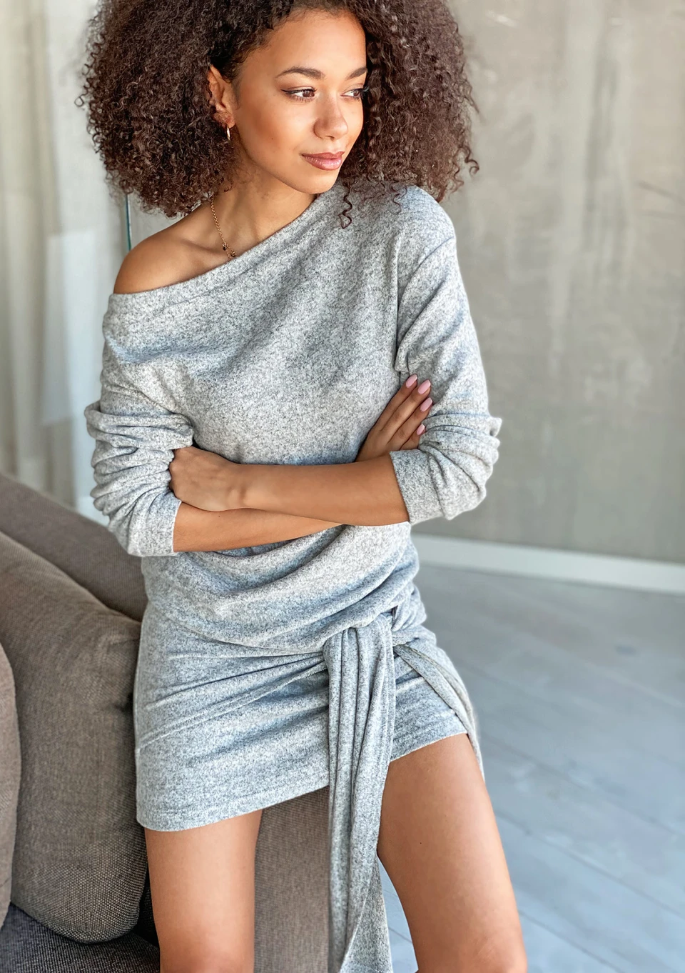 Kelie - Dopasowana sukienka mini z dzianiny Taupe