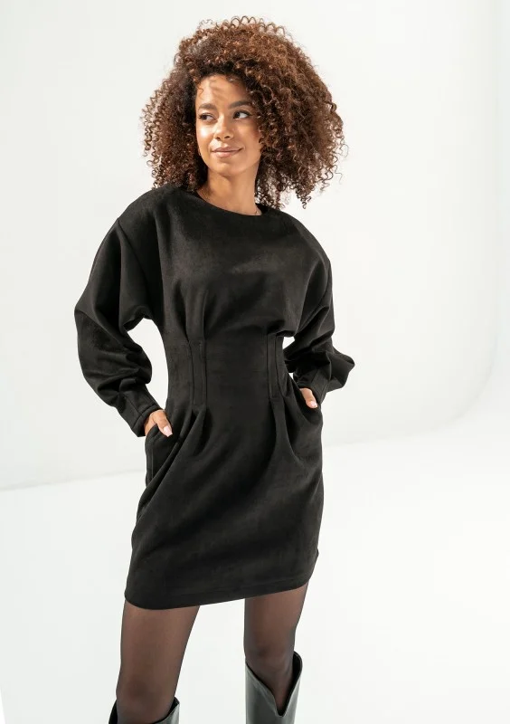 Matea - Ołówkowa sukienka mini z imitacji zamszu Czarna