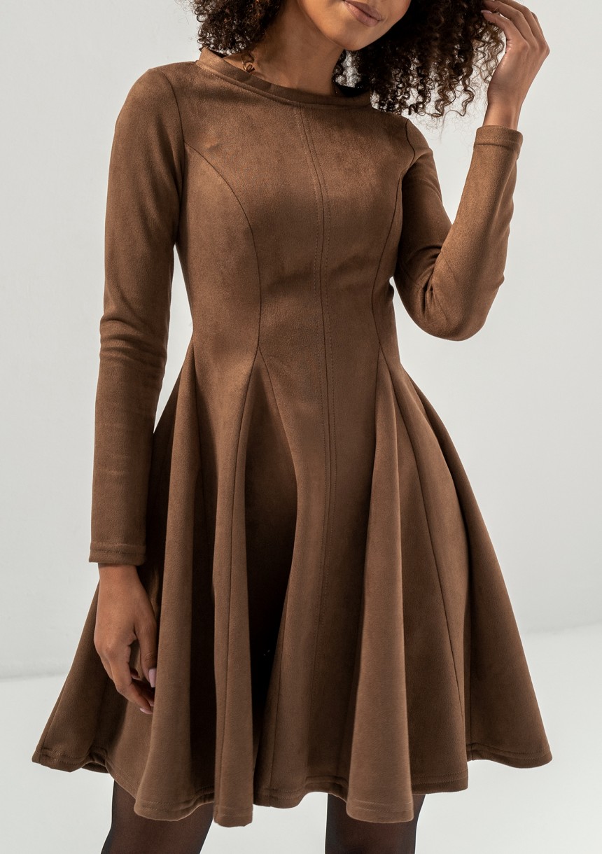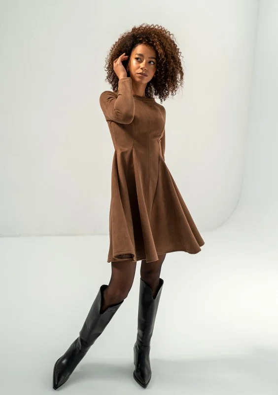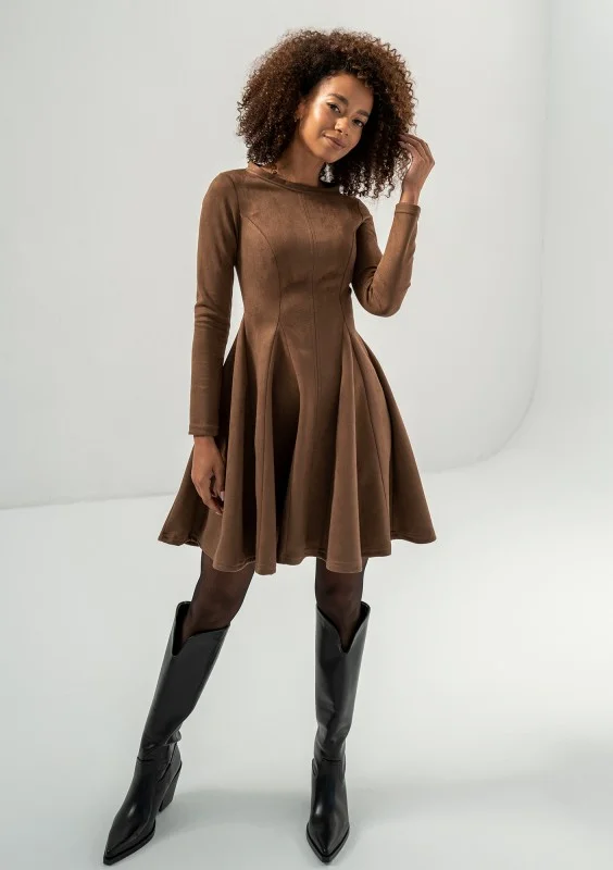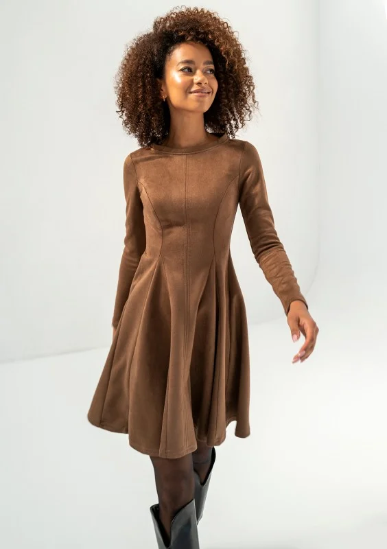 Kelle - Rozkloszowana sukienka z imitacji zamszu Brązowa