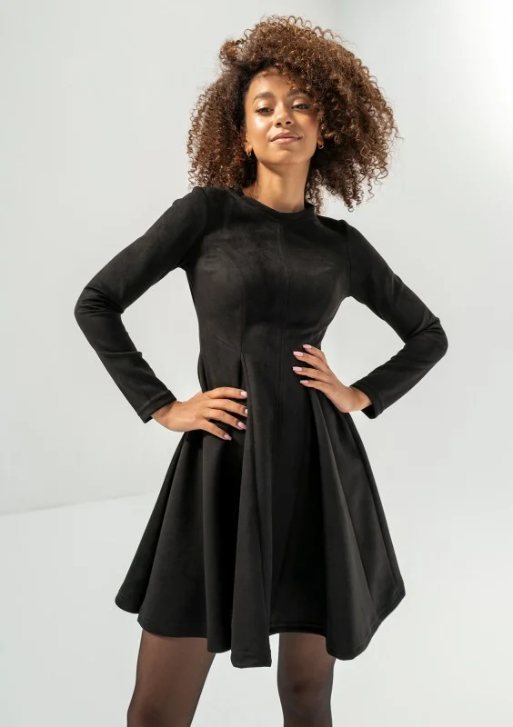 Kelle - Rozkloszowana sukienka z imitacji zamszu Czarna