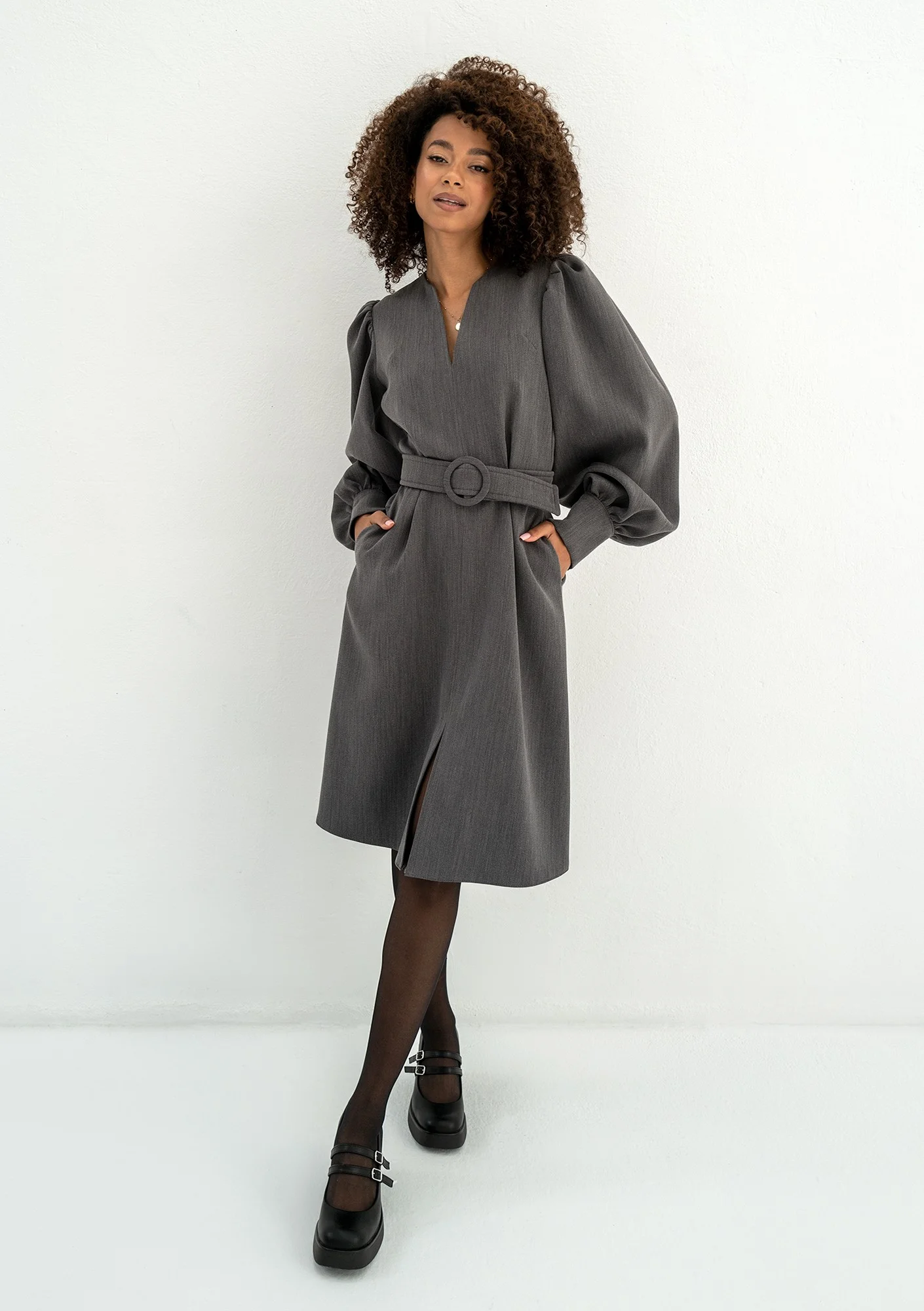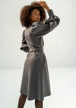 Larisa - Rozkloszowana sukienka z paskiem Grafitowa