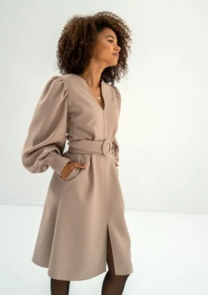 Larisa - Rozkloszowana sukienka z paskiem Beżowa