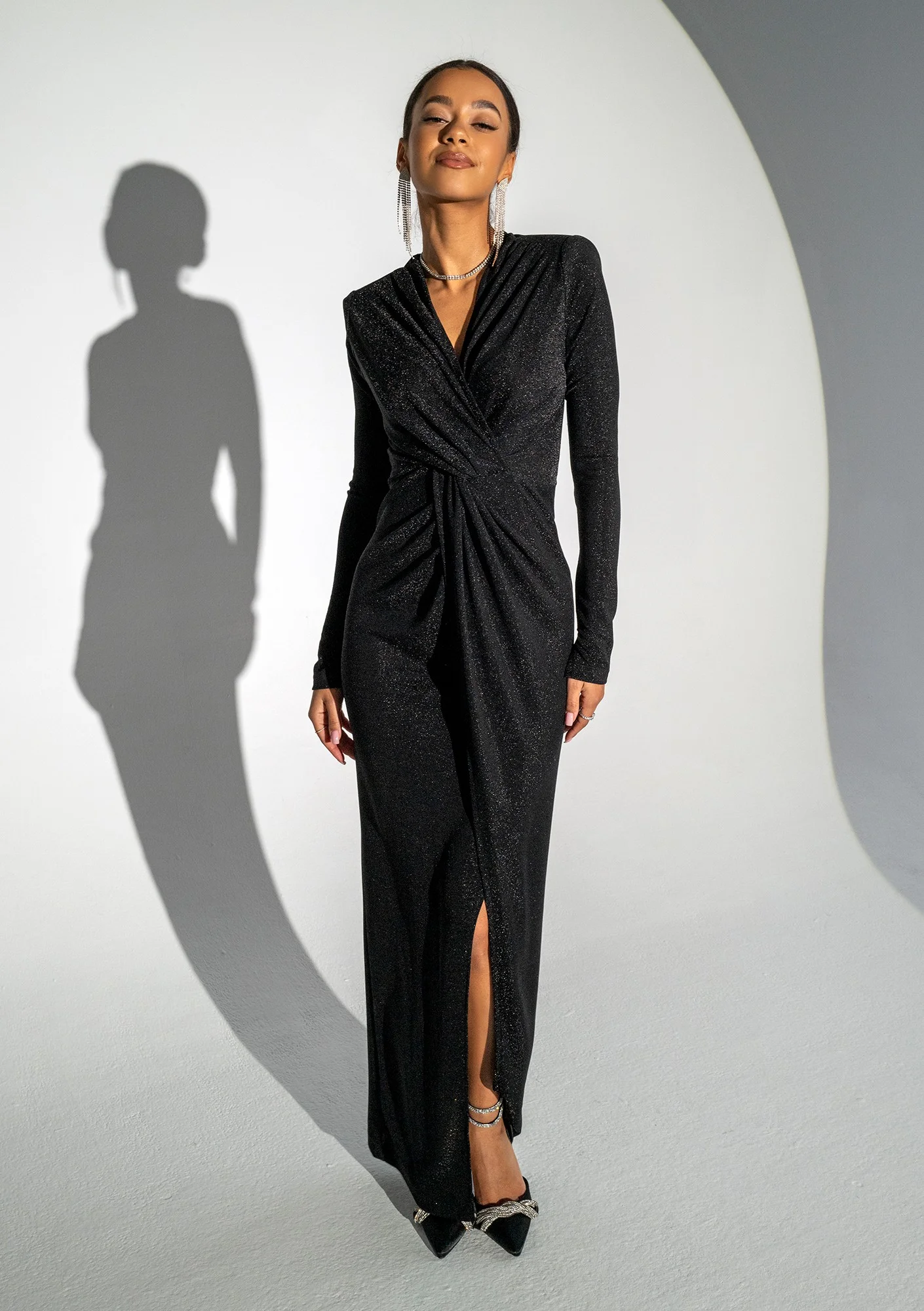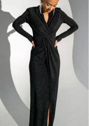 Mayell - Błyszcząca sukienka maxi Czarna