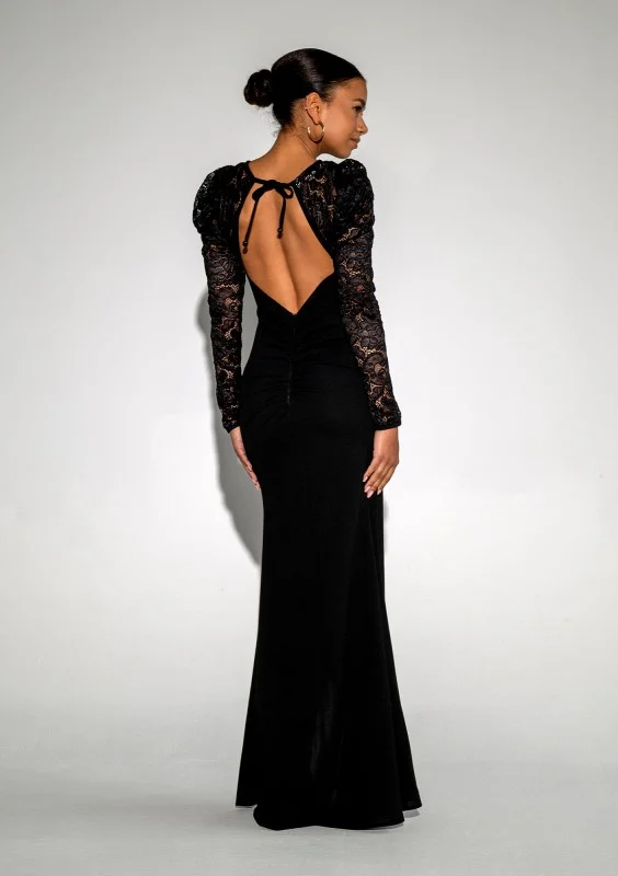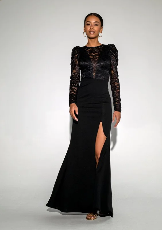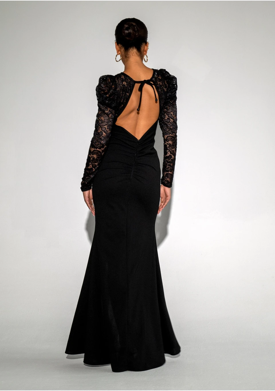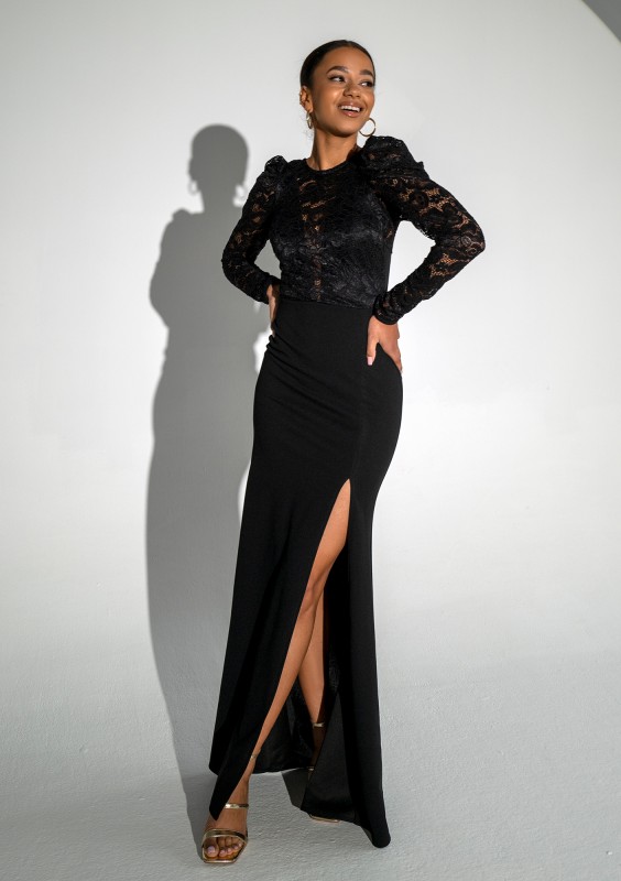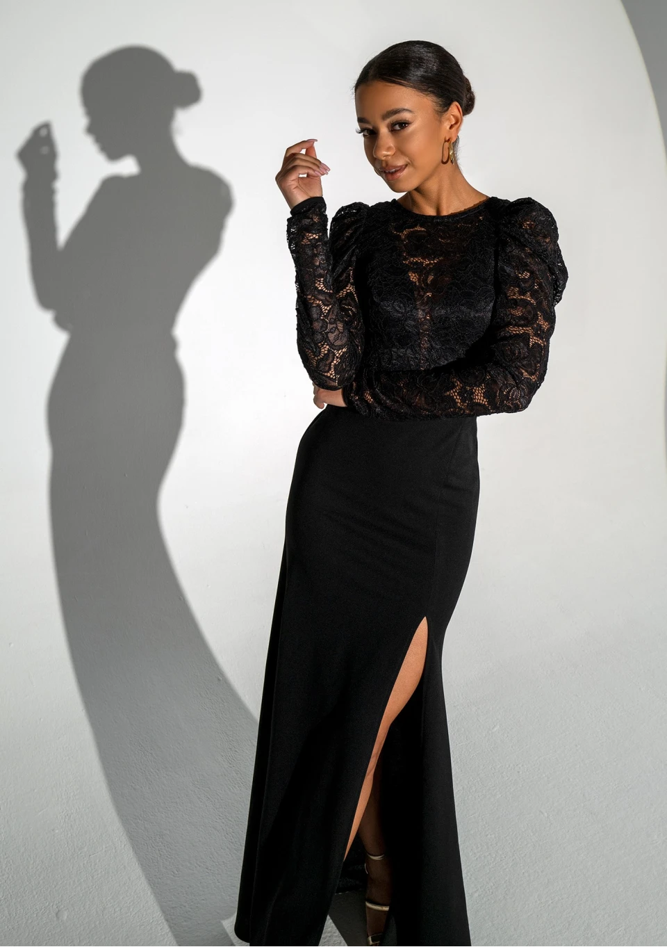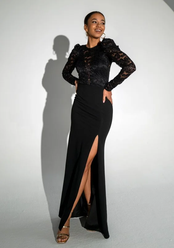 Roma - Sukienka wieczorowa maxi z koronką Czarna