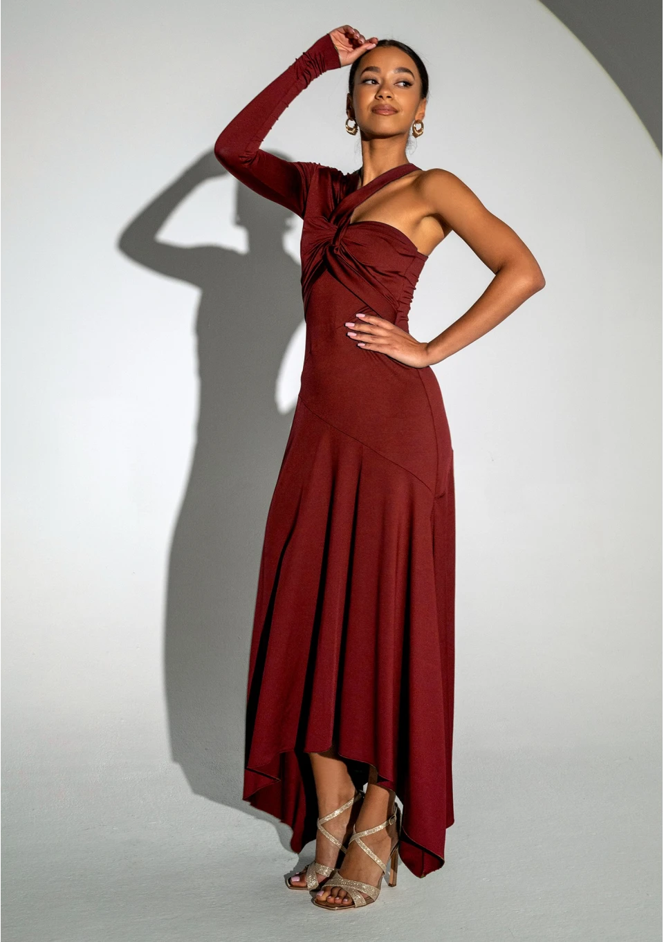 Carlita - Asymetryczna sukienka z efektownym dekoltem Bordowa