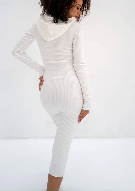 Bessie - Dzianinowa sukienka bodycon z kapturem Ecru