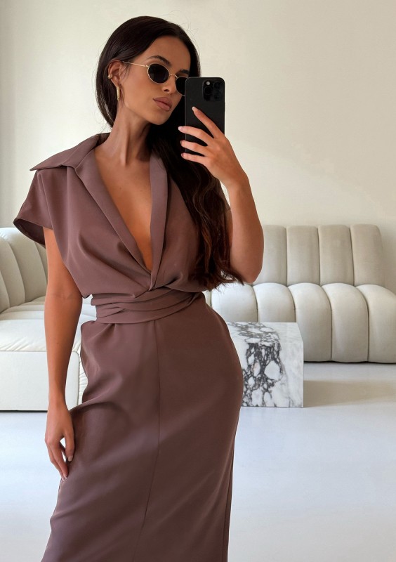 Axelle - Sukienka midi z wiązaniem Mocca