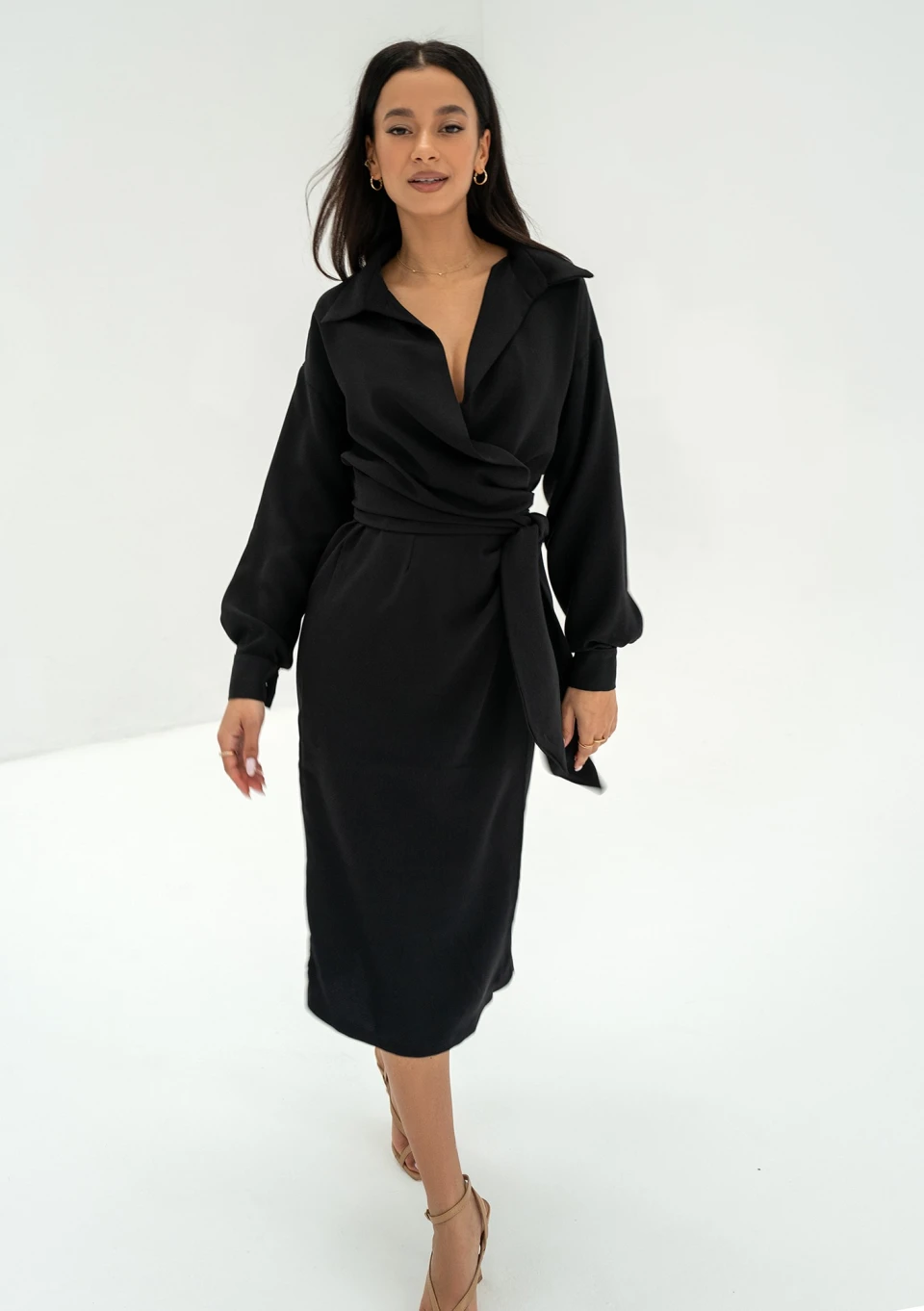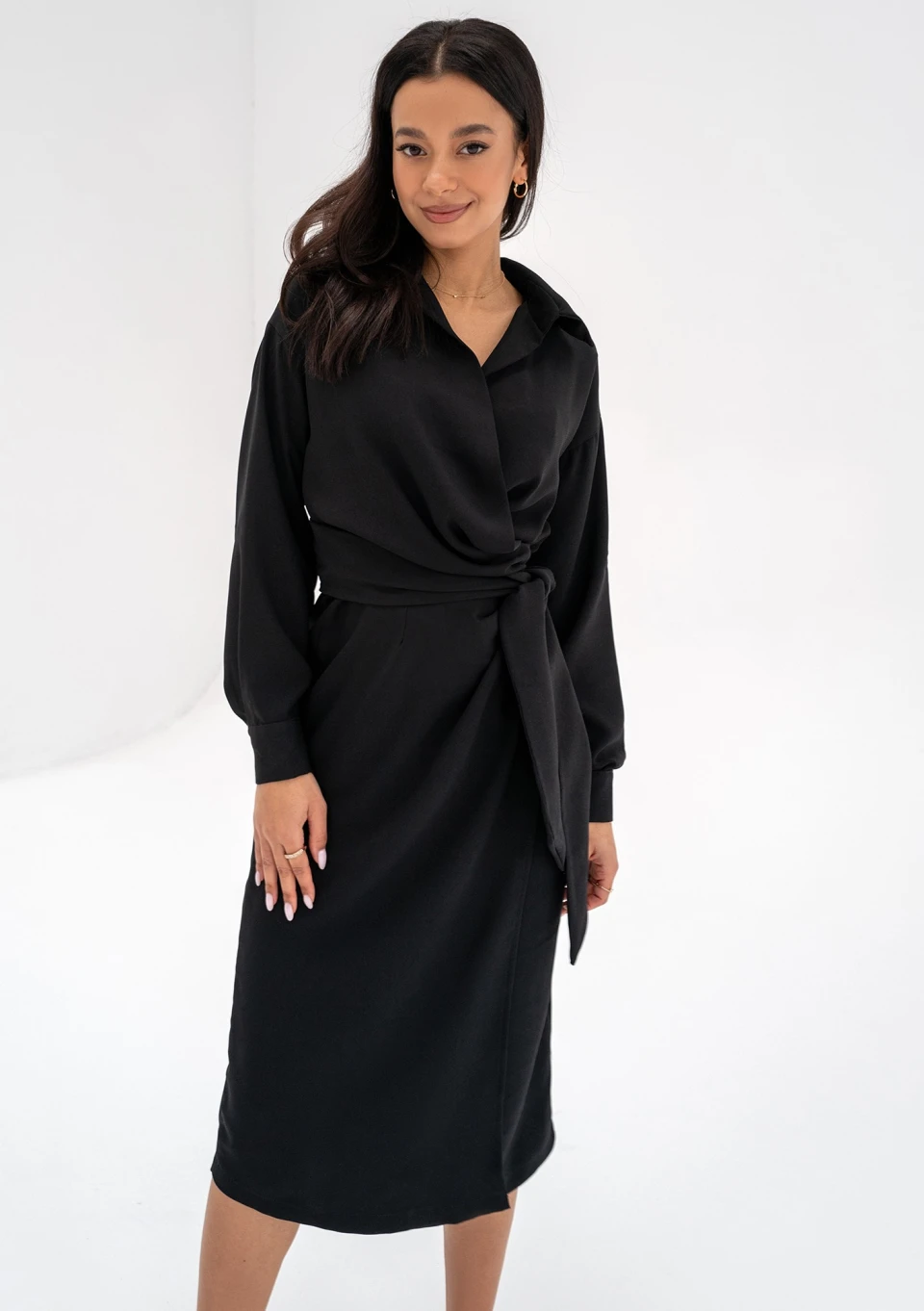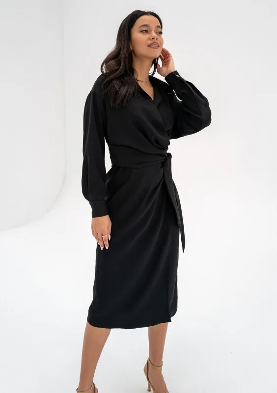 Emily - Kopertowa sukienka midi Czarna