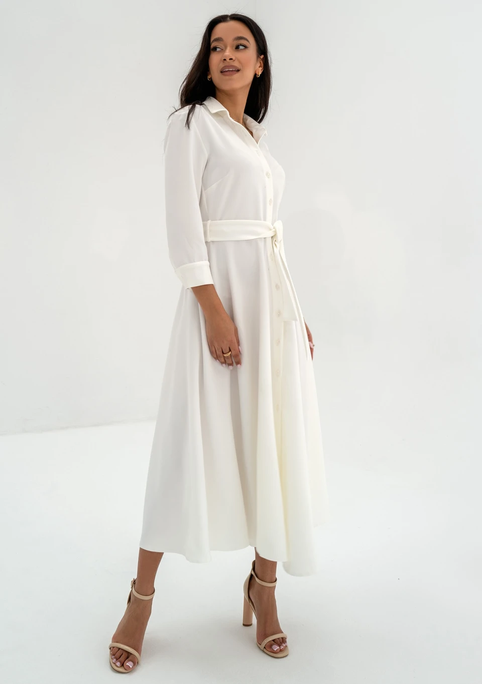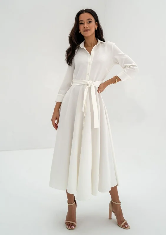 Melody - Koszulowa sukienka midi z wiązaniem Ecru