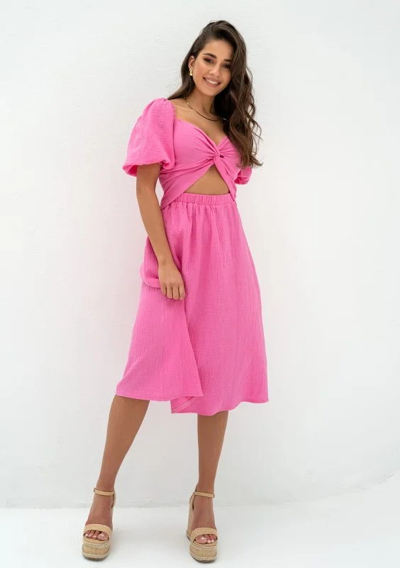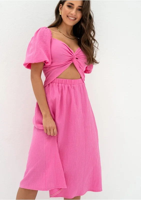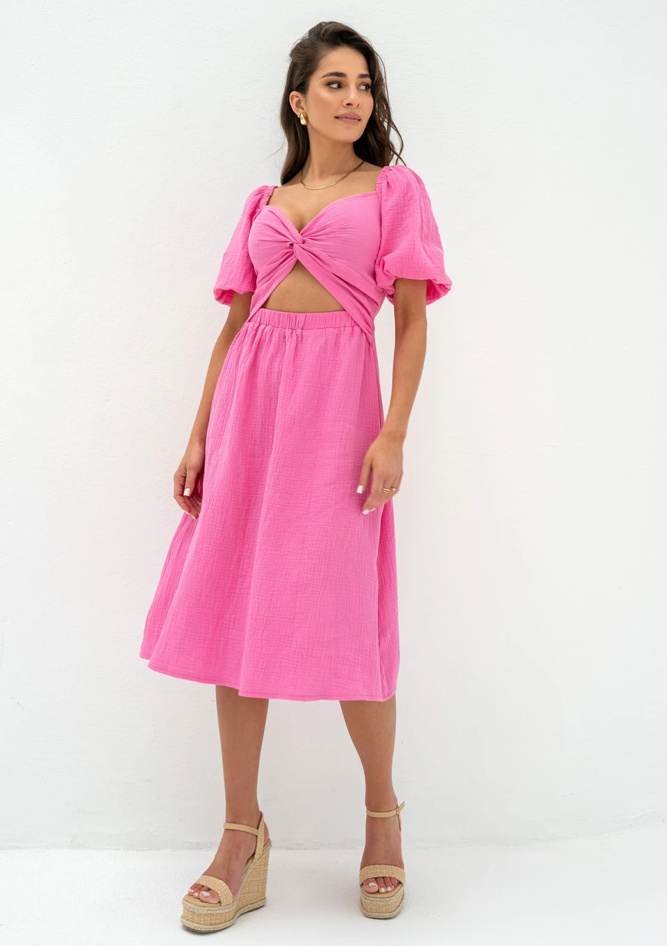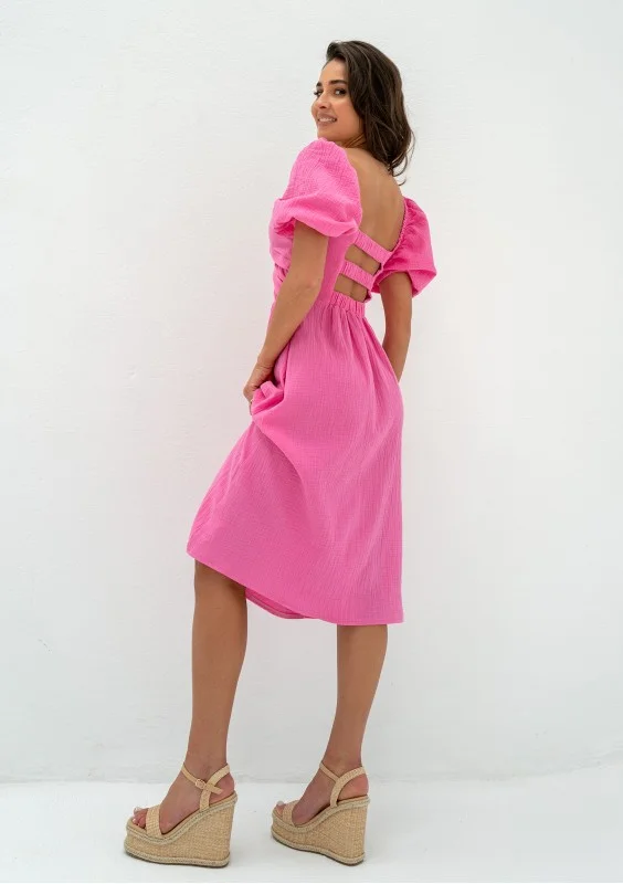 Rosina - Sukienka letnia midi z muślinu Różowa