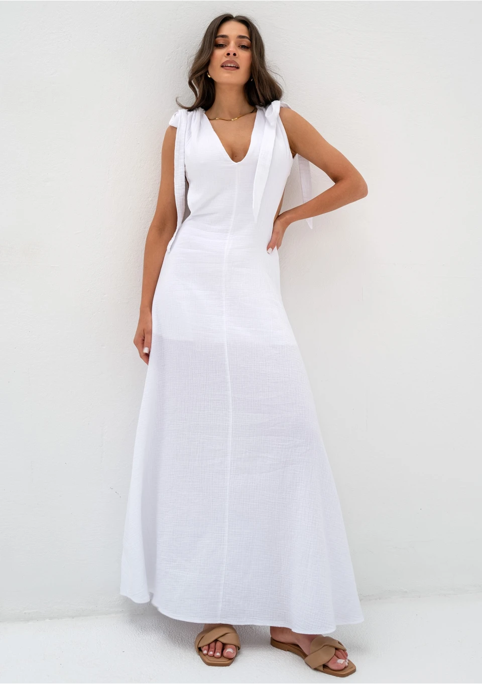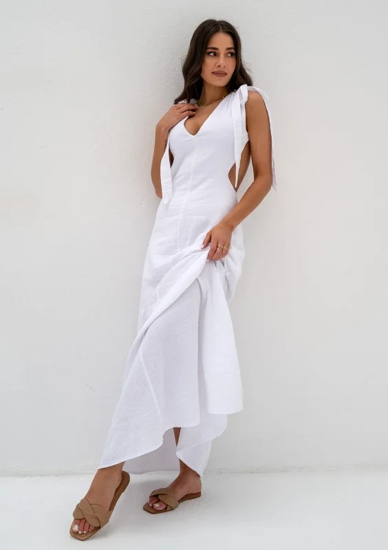 Liliane - Muślinowa sukienka midi z wiązaniem Ivory Cream